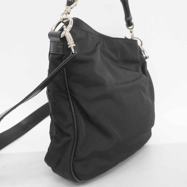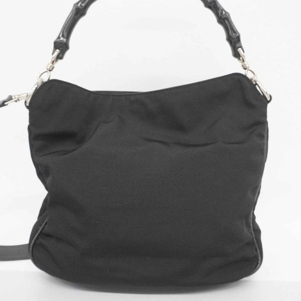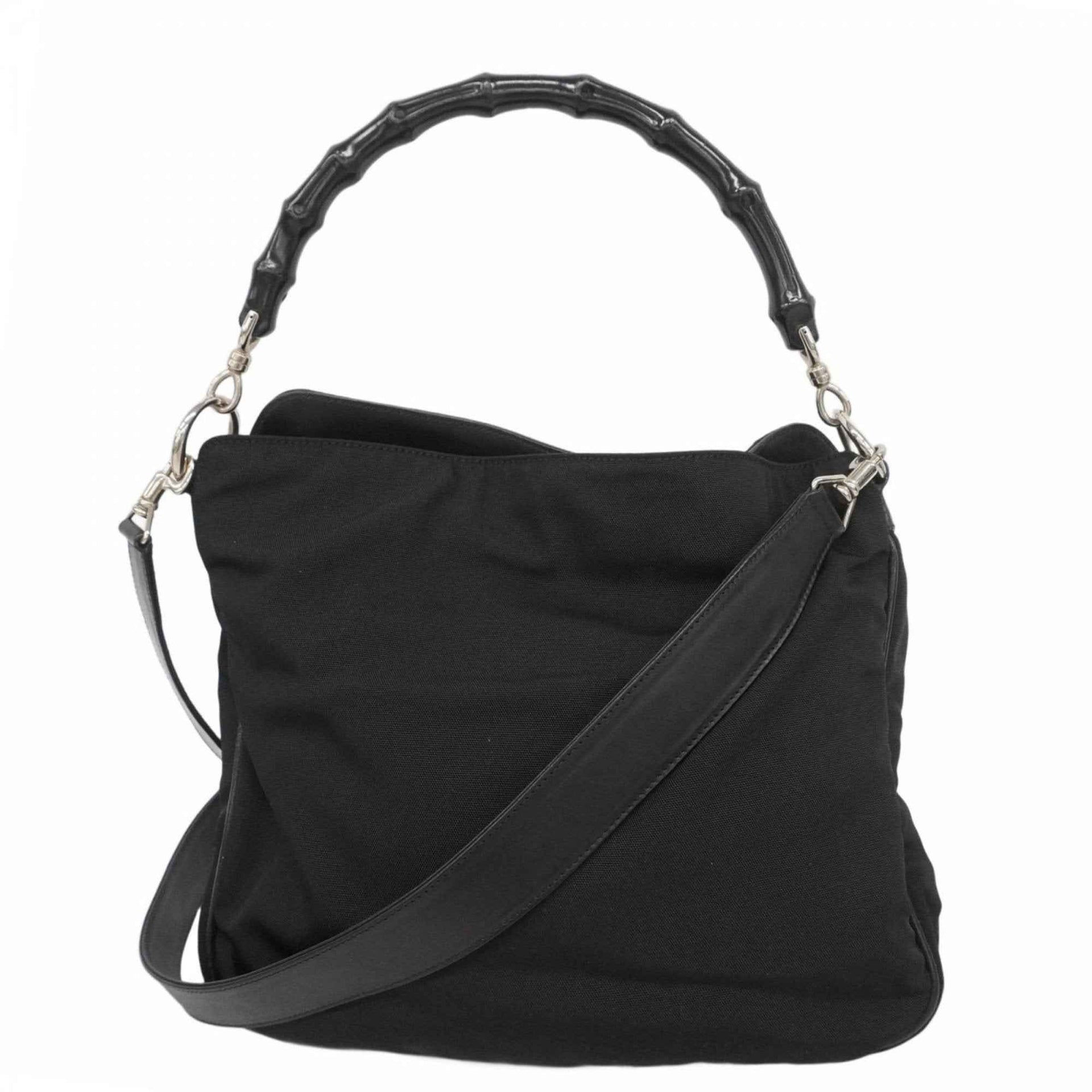 Gucci Bamboo 001 1638 Nylon Handbag in Black, 2-Way Bag for Women