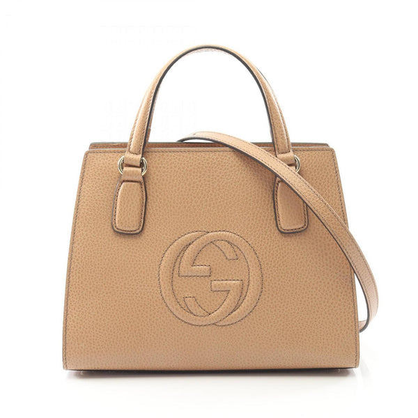 Gucci Soho Interlocking G Handbag, Leather, Women\'s, Beige, 607722
