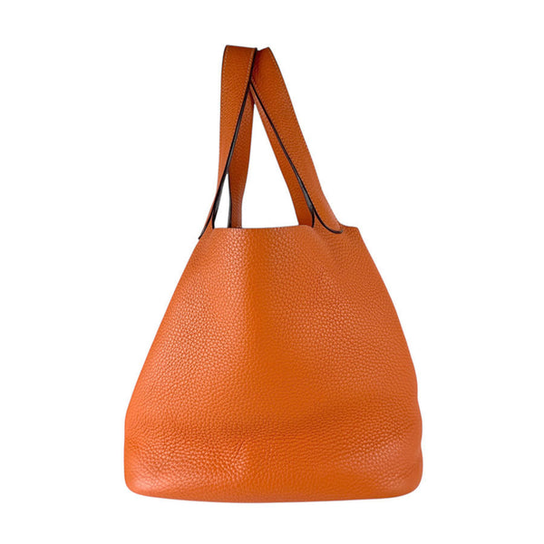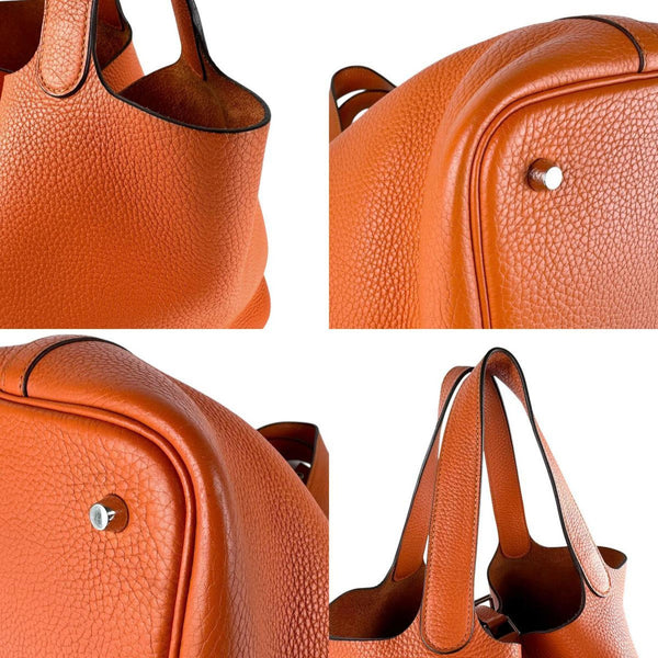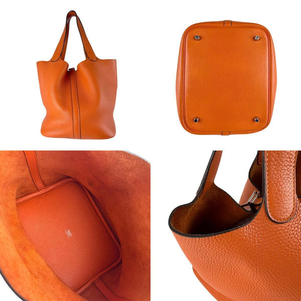 Hermes Hermès Picotin Lock MM 22 Handbag in Taurillon Clemence Leather, Orange and Silver, Women\'s, z7353