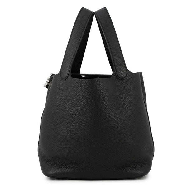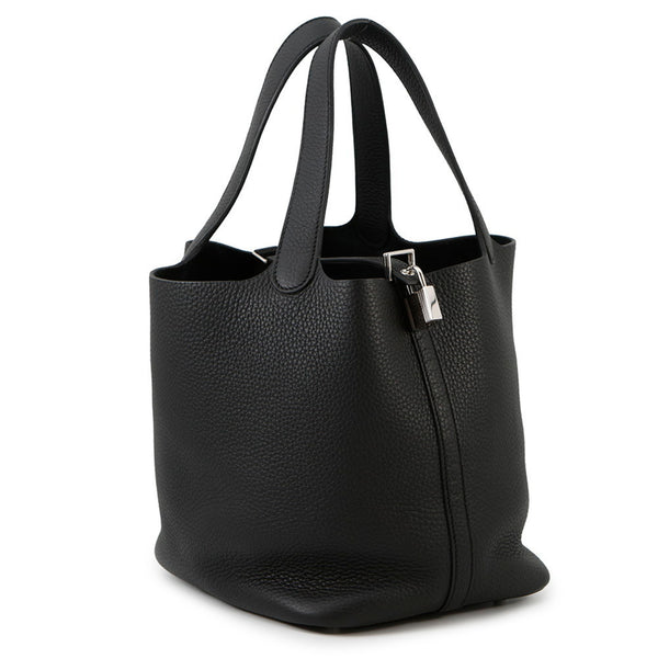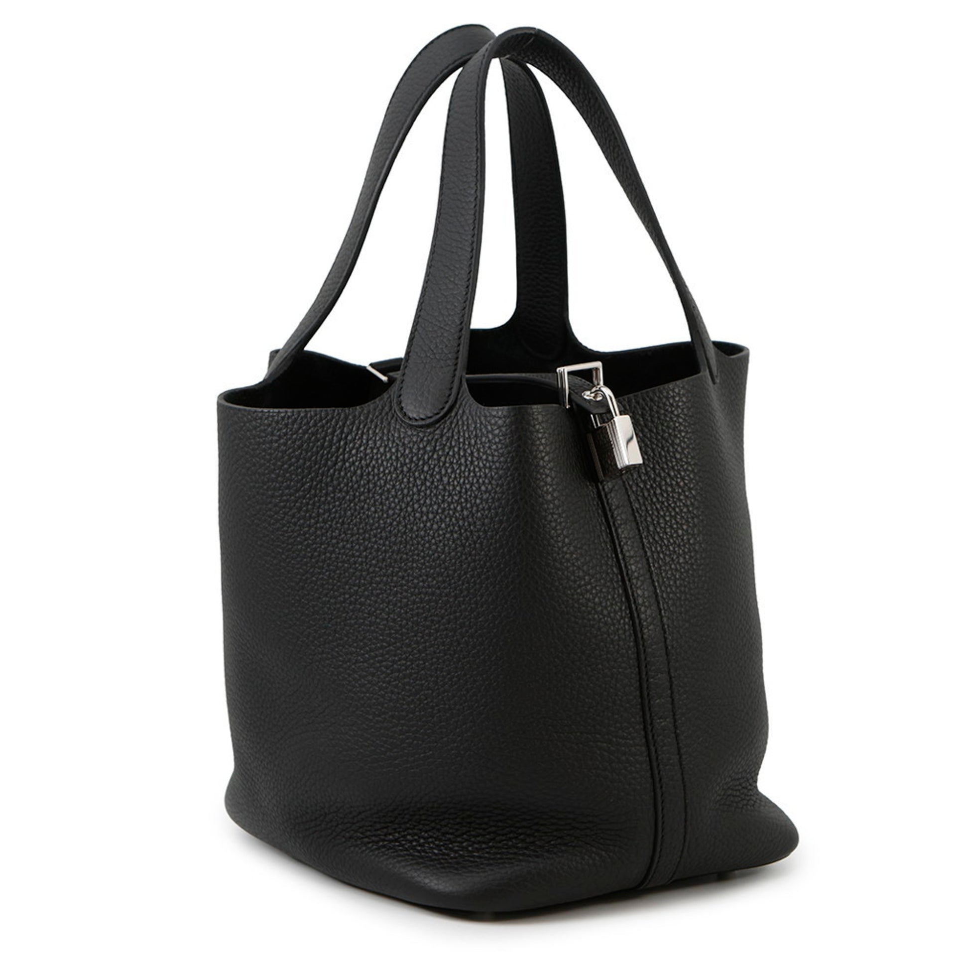 Hermes Hermès Picotin Lock MM Handbag, Black, Taurillon Clemence Leather, W Stamp, Black