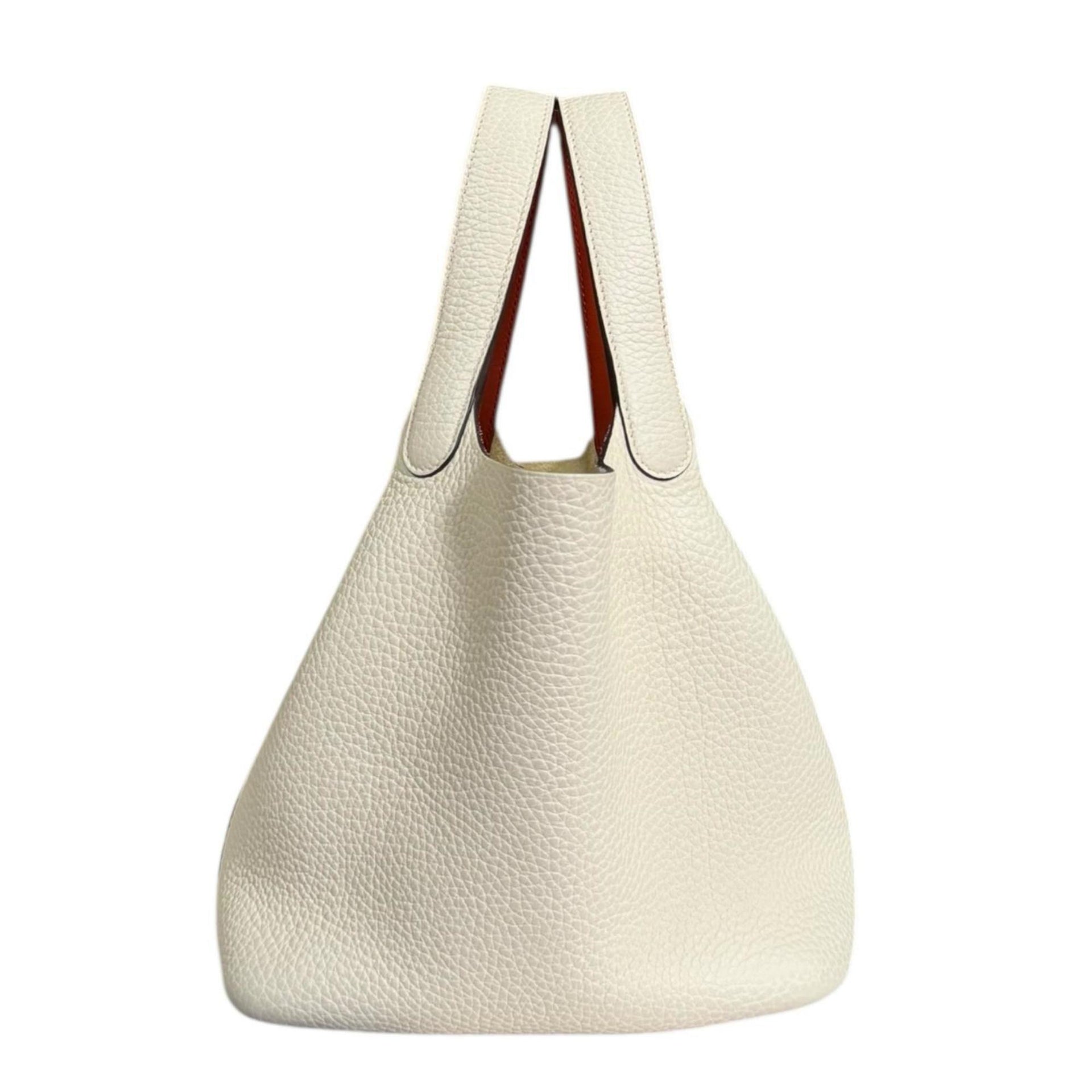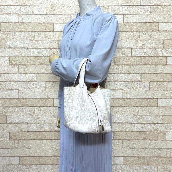 Hermès Picotin Lock PM Eclat Handbag, Taurillon Clemence Leather, White, Y Stamp, Women\'s, HERMES