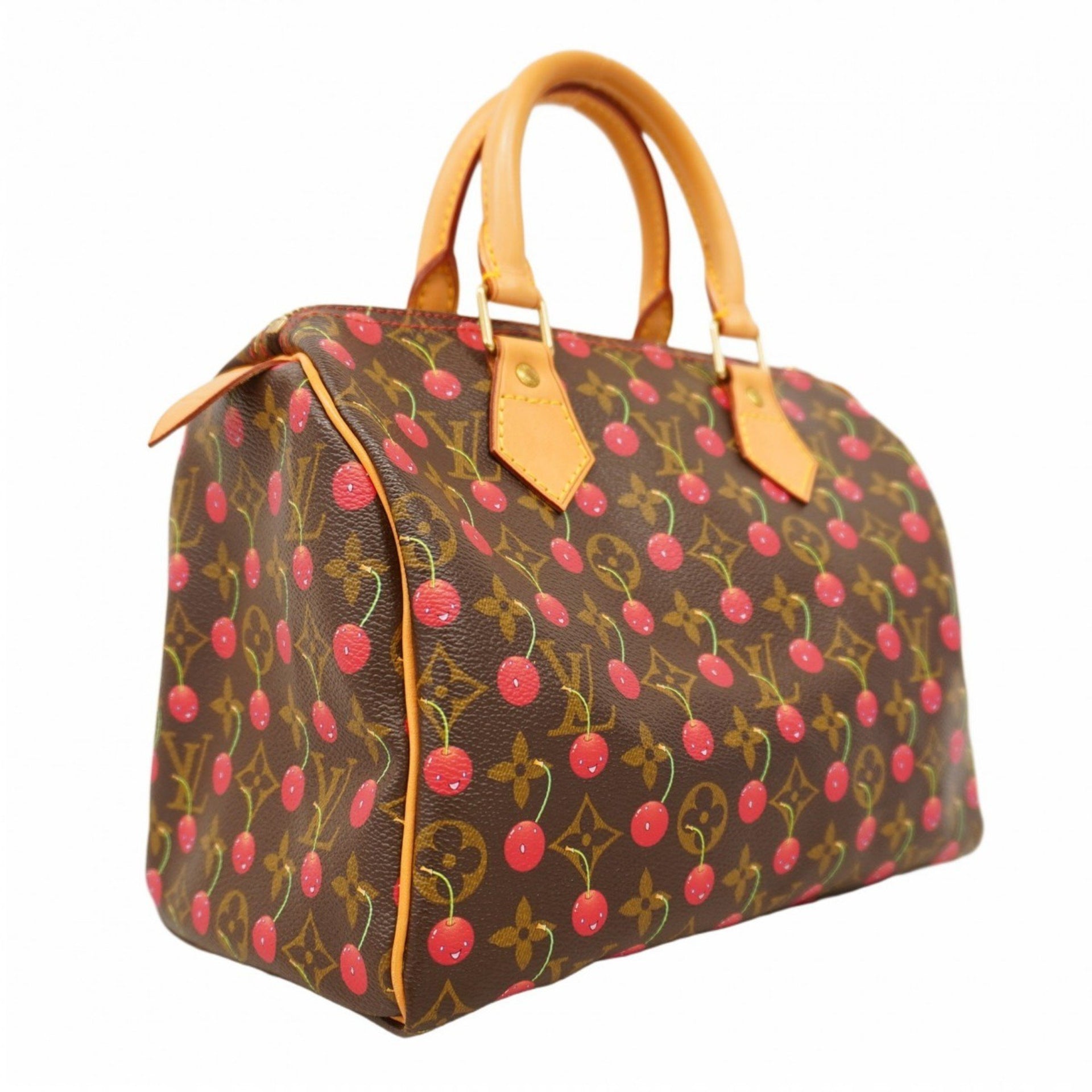 Louis Vuitton Monogram Cherry Speedy 25 Handbag in Collaboration with Takashi Murakami, M95009, Brown and Red, Women\'s