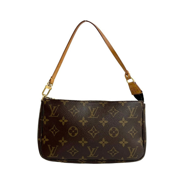 LOUIS VUITTON Pochette Accessoires Monogram Leather Mini Handbag Pouch Brown 37571