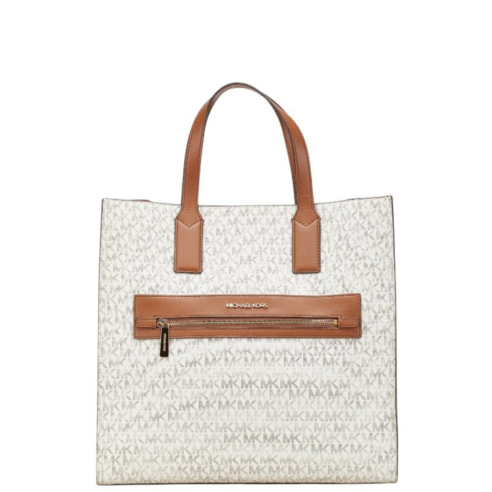 Michael Kors Signature Handbag Tote Bag 35T0GY9T3B White and Brown Leather Women\'s