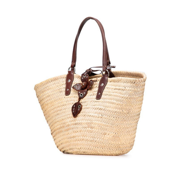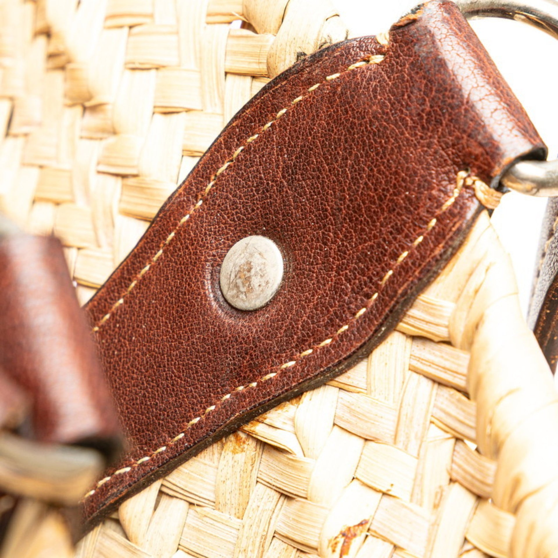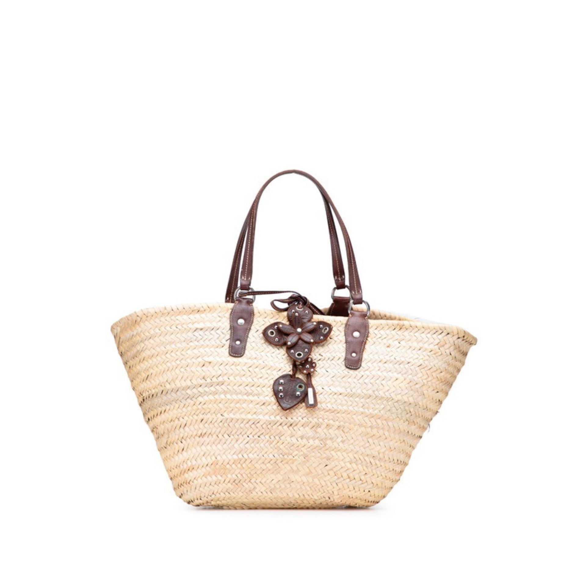 Miu Miu Miu flower motif basket bag handbag in beige, brown, raffia and leather for women.