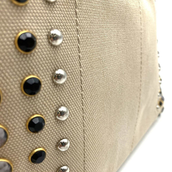 PRADA Prada Canapa Beaded Tote Bag, Handbag, Studded Canvas, Beige, Ivory, Women\'s