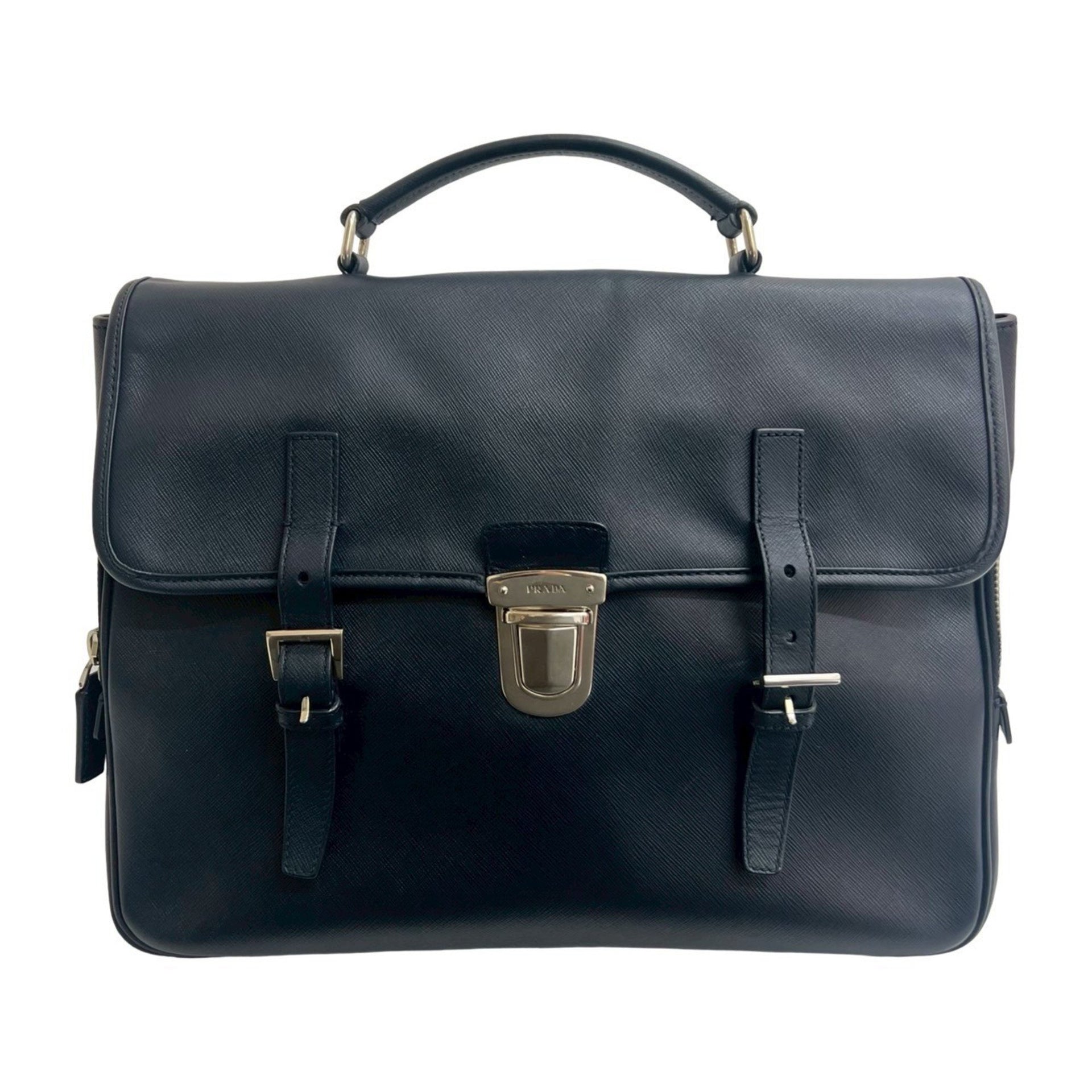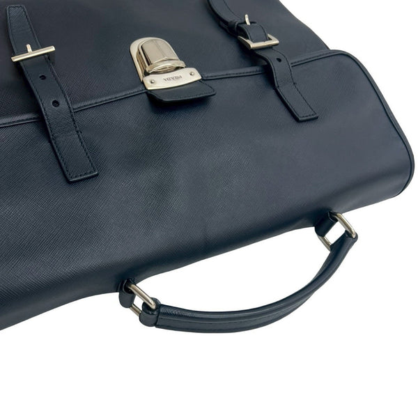 PRADA Prada Triangle Logo Hardware Saffiano Leather Handbag/Business Bag Briefcase Navy Blue 25076