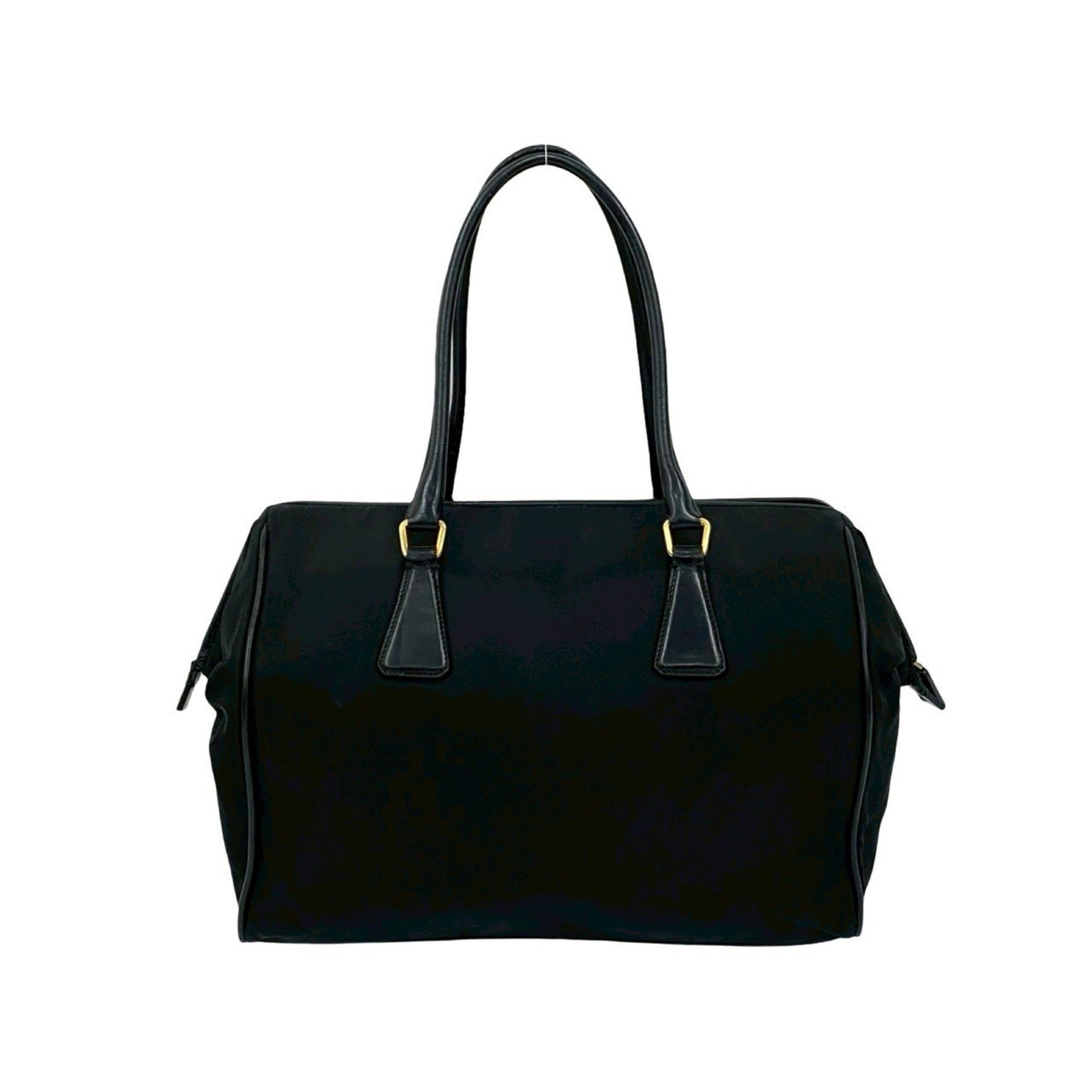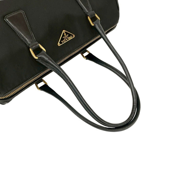 PRADA Prada Triangle Logo Plate Tessuto Nylon and Leather Handbag Mini Boston Bag Black 57639