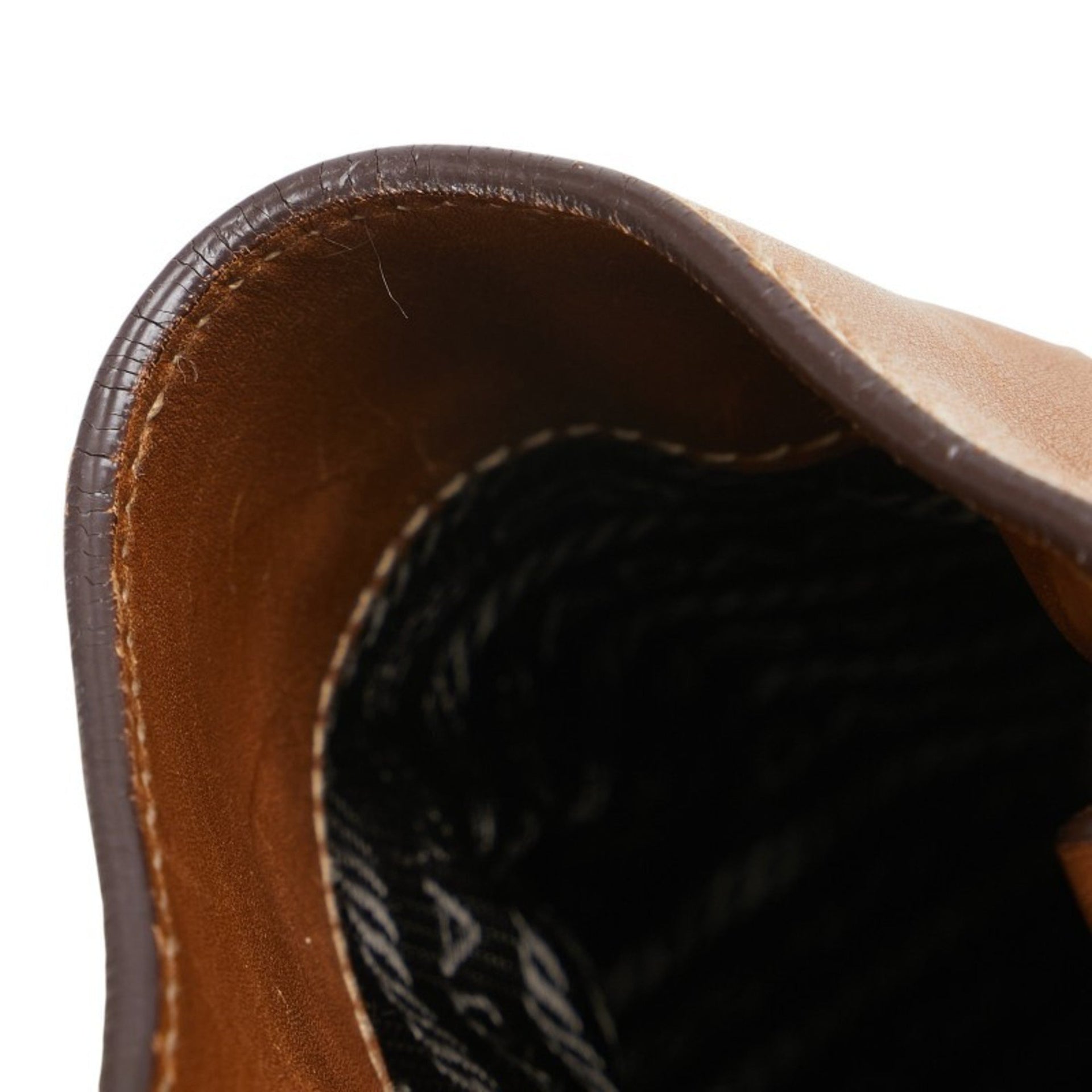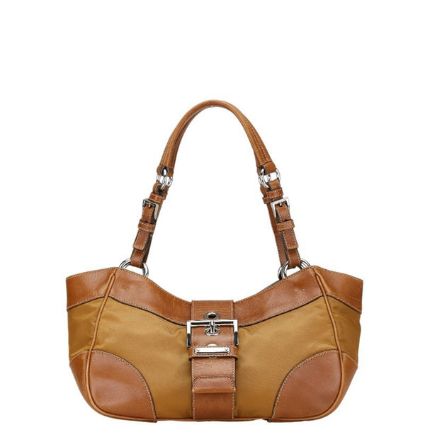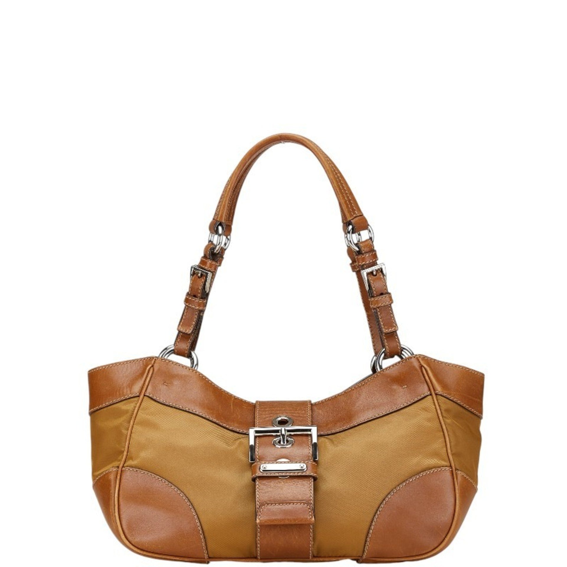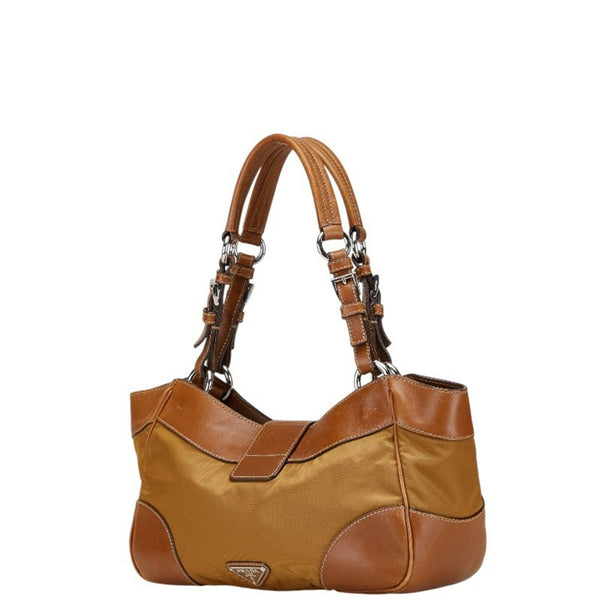 Prada Triangle Logo Plate Handbag Shoulder Bag Brown Nylon Leather Women\'s PRADA