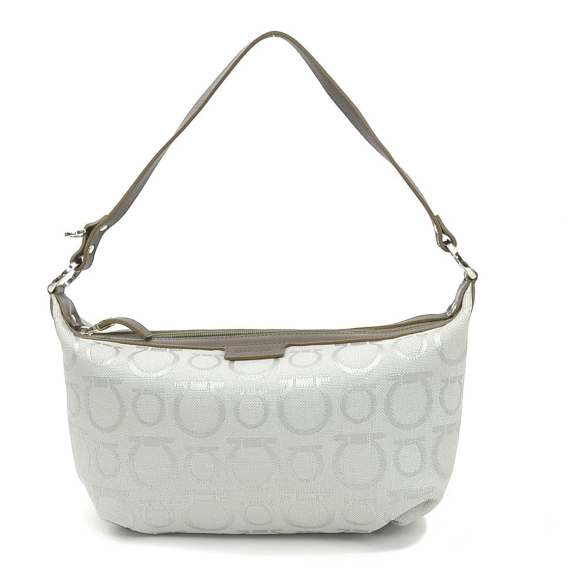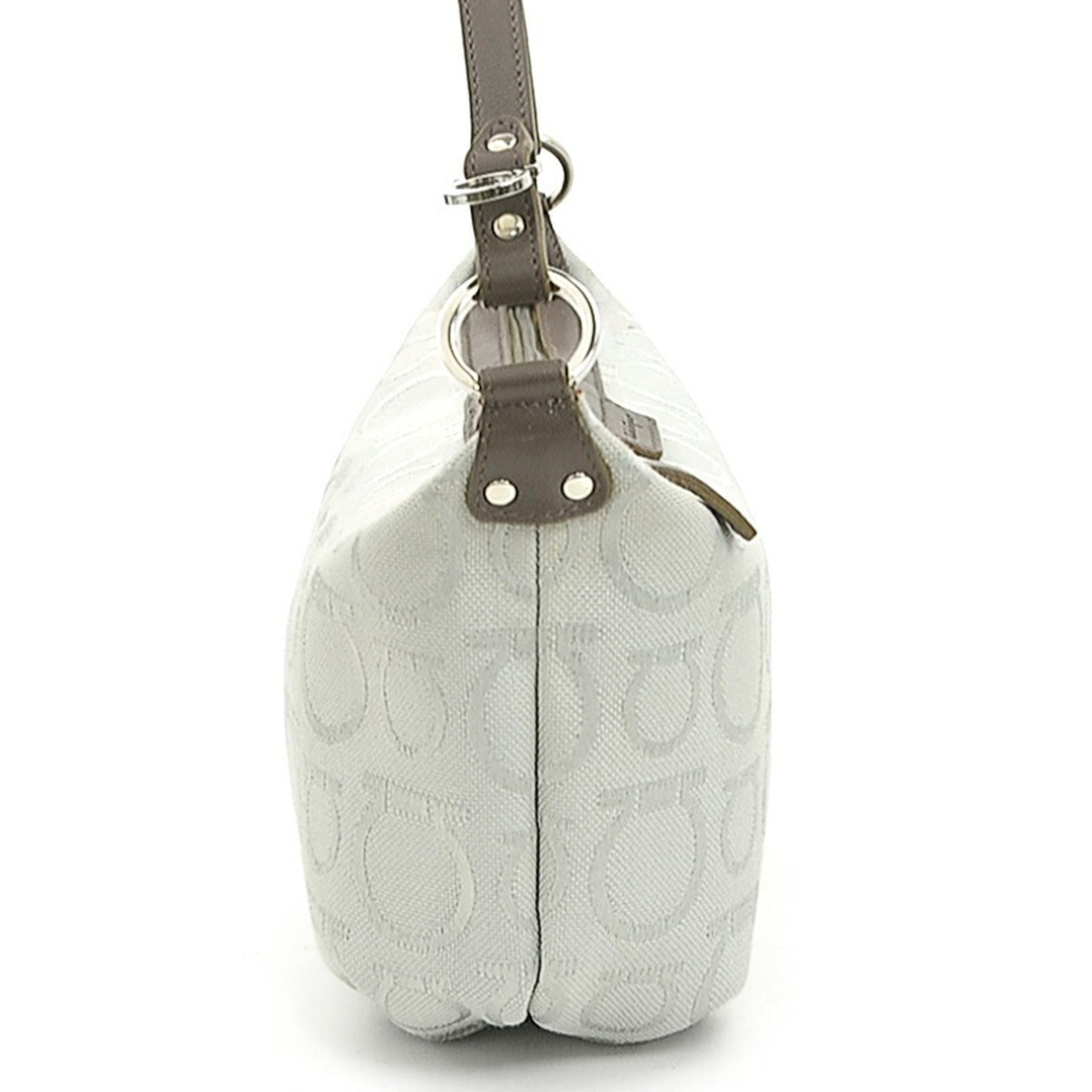 Salvatore Ferragamo Gancini handbag in nylon canvas and leather, brown gray, women\'s, h31616a
