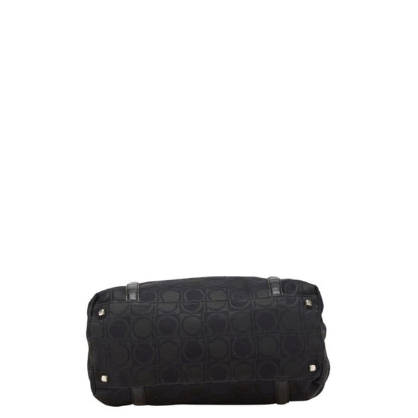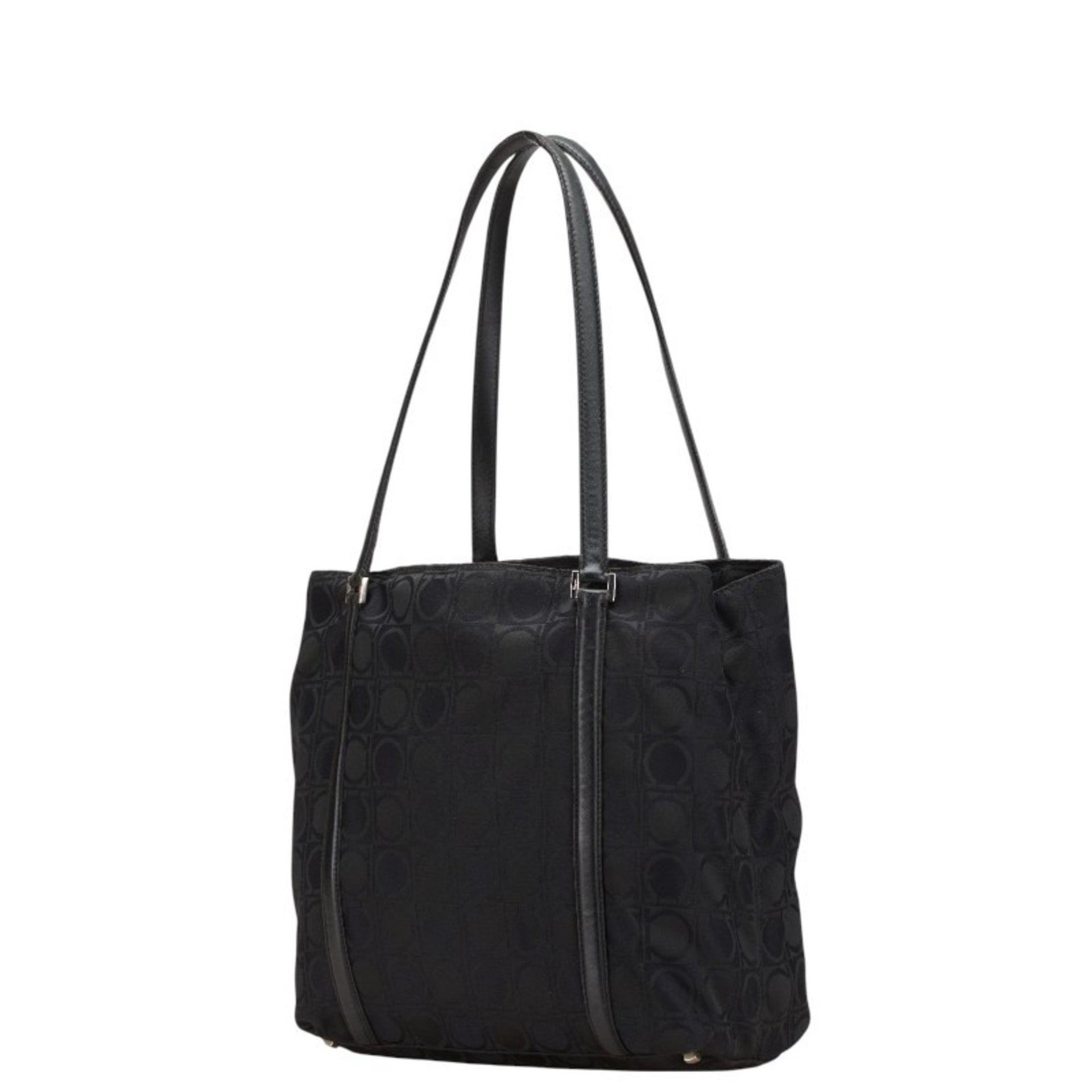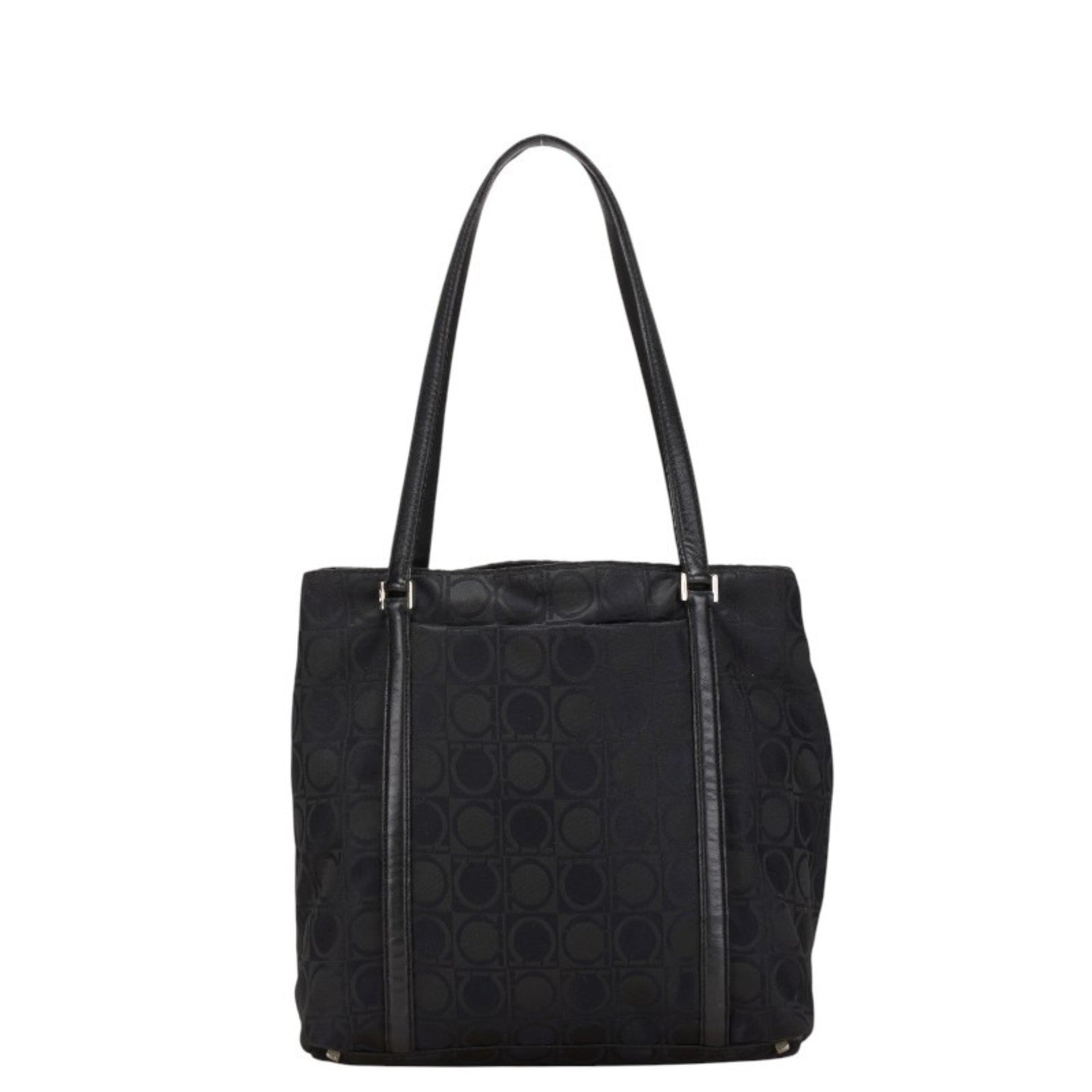 Salvatore Ferragamo Gancini handbag tote bag in black nylon and leather for women.