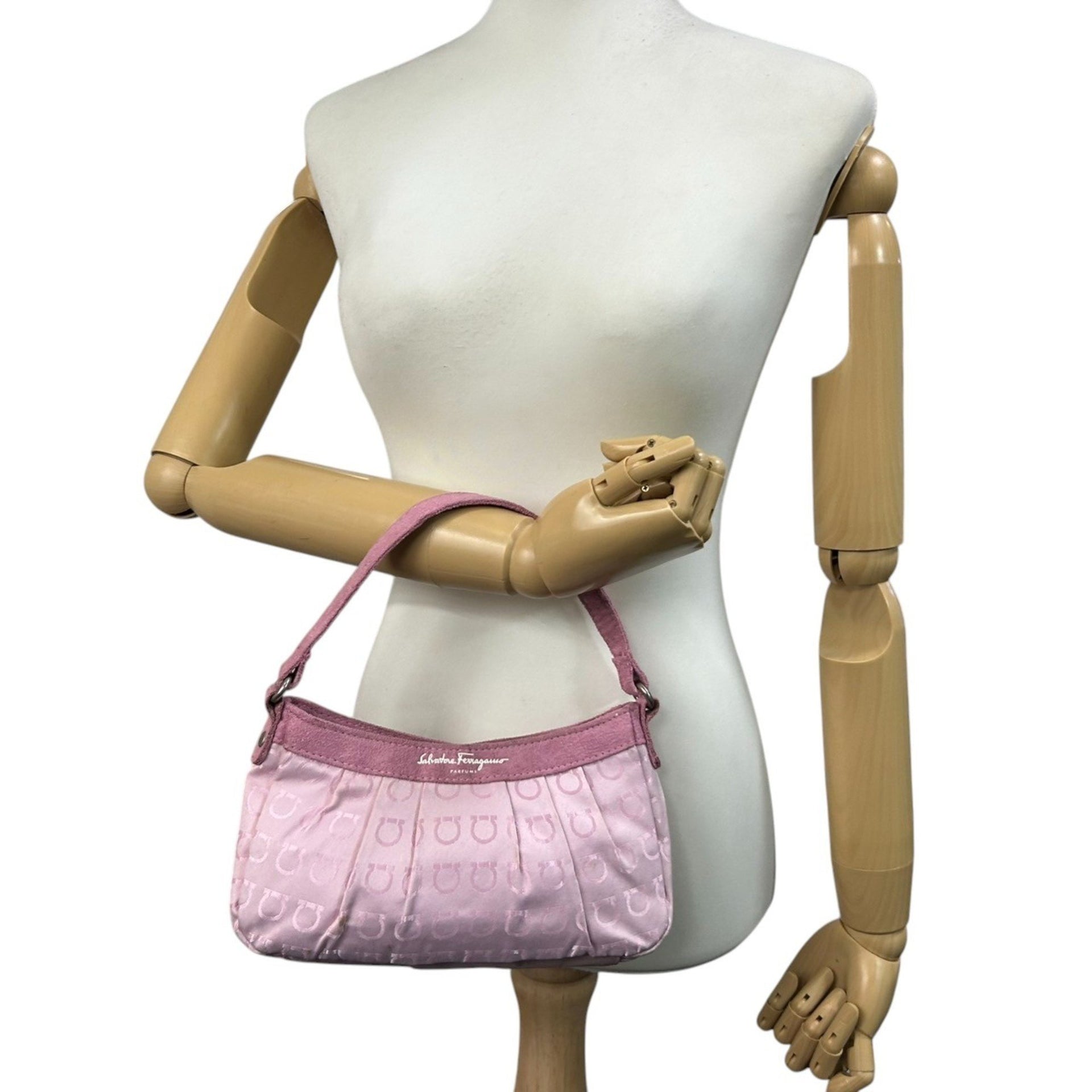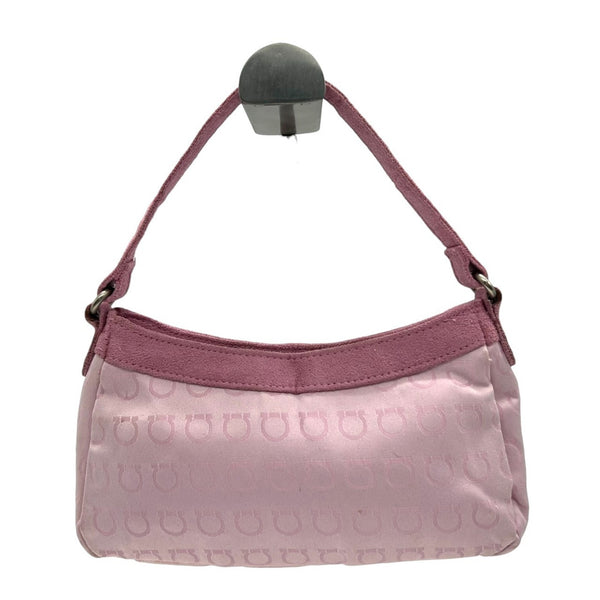 Salvatore Ferragamo handbag, mini bag, and accessory pouch in Gancini jacquard canvas suede, pink, women\'s size 39