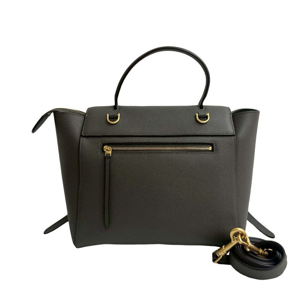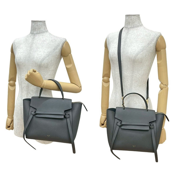 Unused Celine Micro Belt Bag in Leather, 2-Way Handbag, Mini Boston Bag, Shoulder Gray, 38587