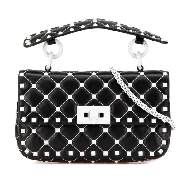 Valentino Rockstud Spike Handbag/Shoulder Bag, 2-Way, Black and White Leather, Women\'s, VALENTINO