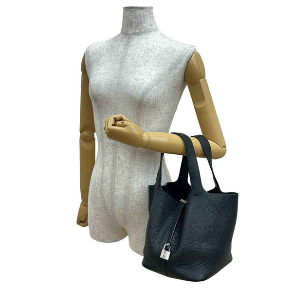 C Stamped HERMES Picotin Lock MM Taurillon Clemence Leather Handbag/Tote Bag Black 622-2
