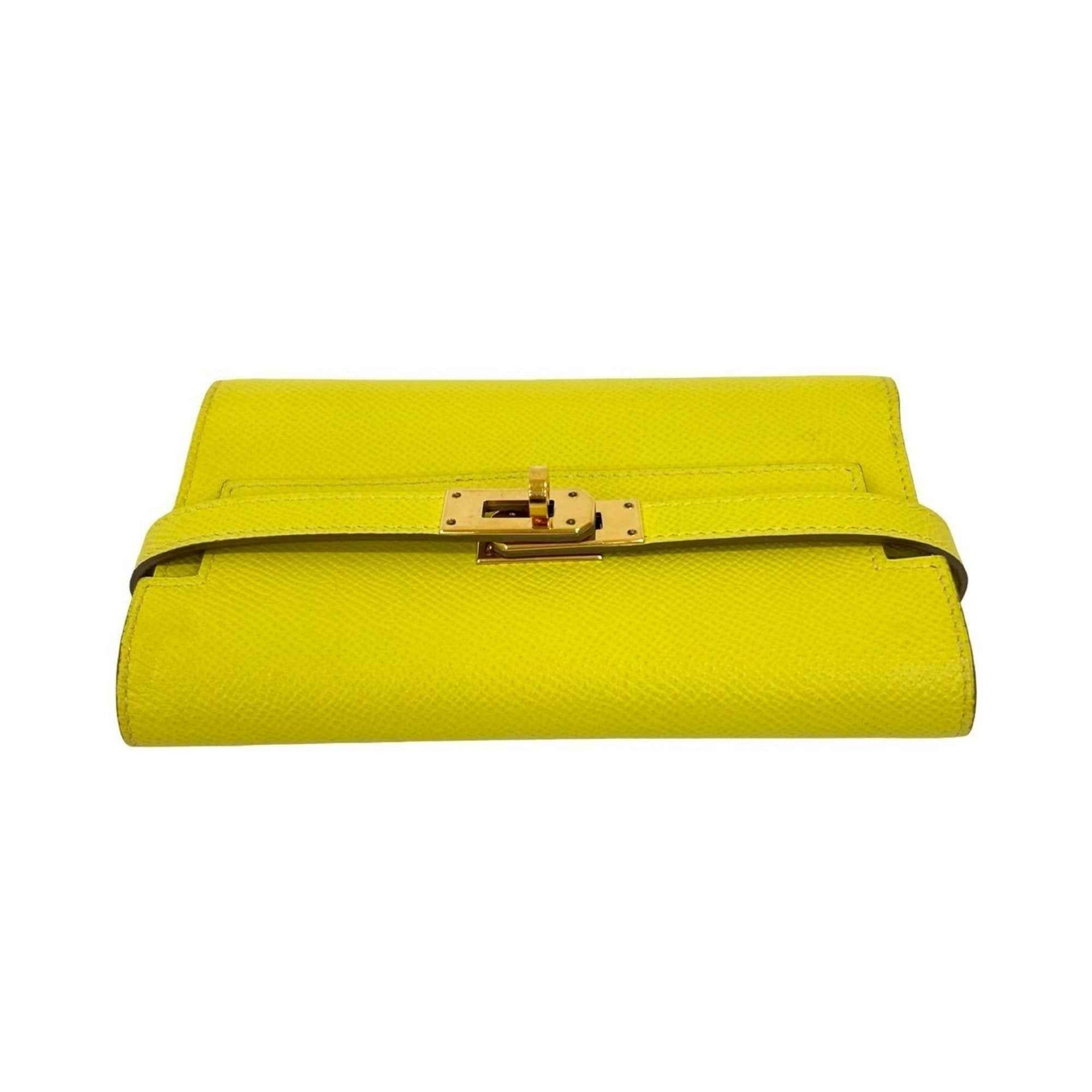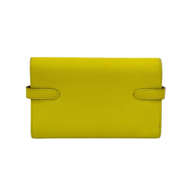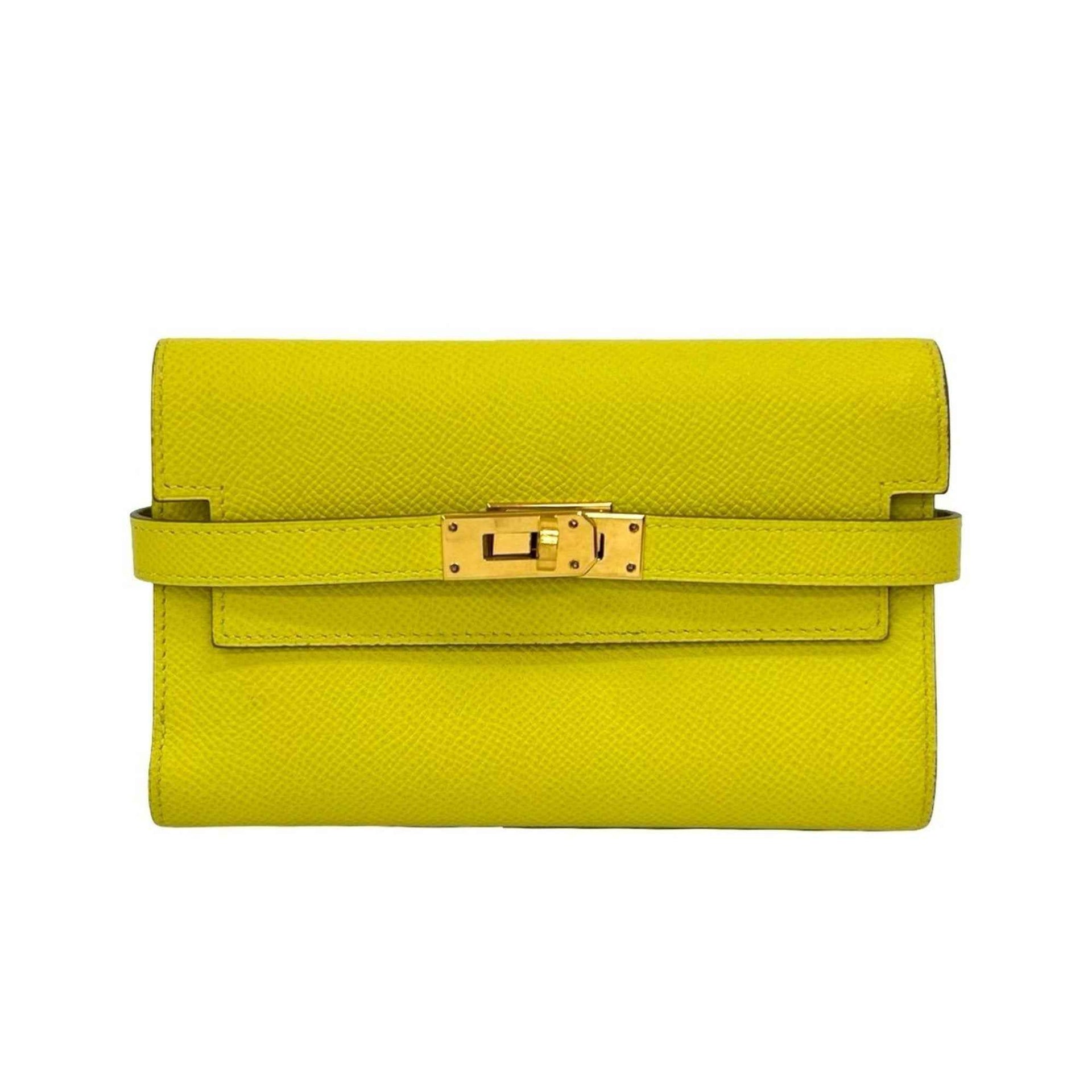 D-stamped HERMES Kelly Compact Epson Leather Bifold Wallet, Yellow, d-193