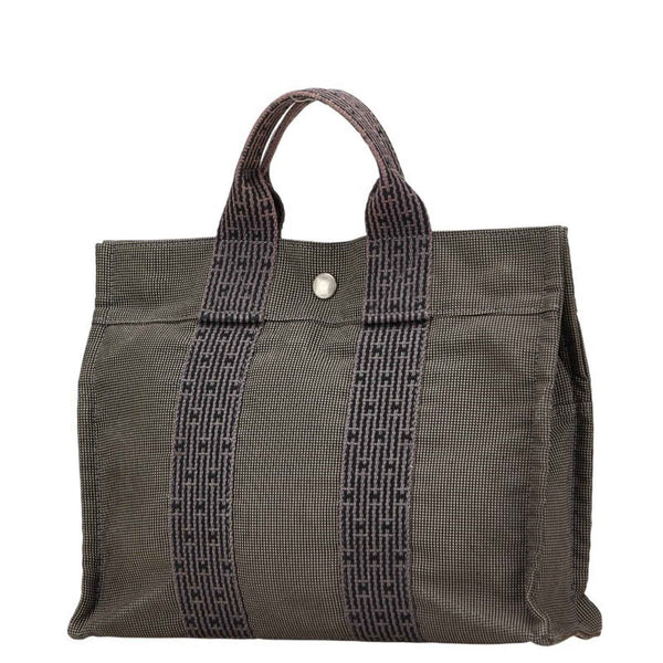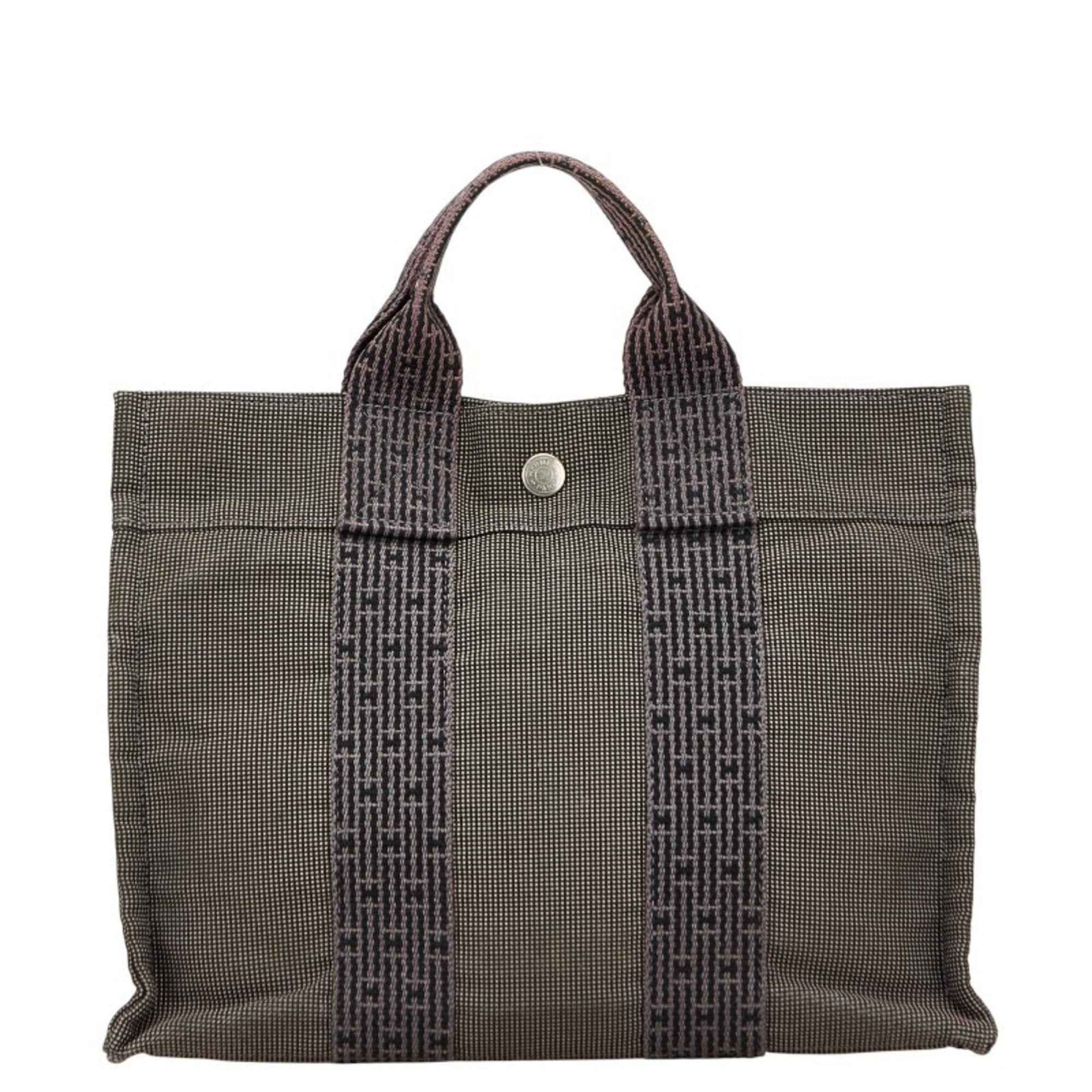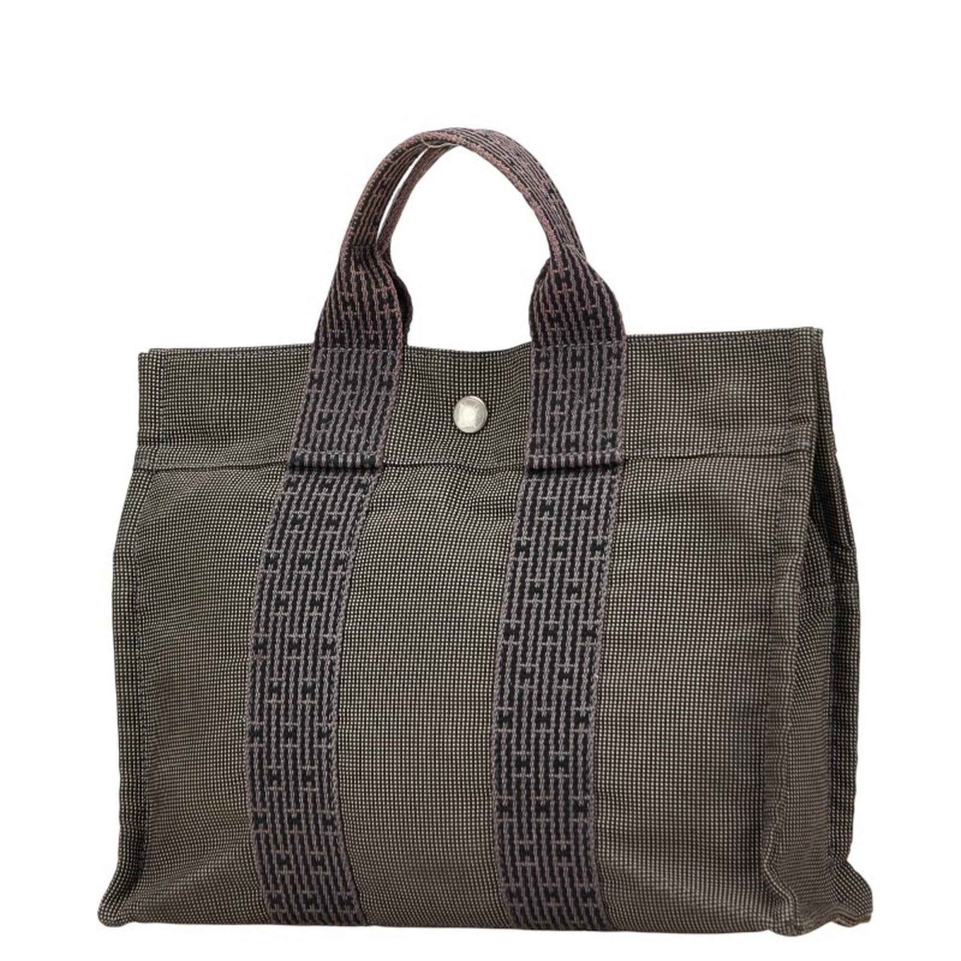 Hermès Air Line Tote PM Handbag, Gray/Black Canvas, Women\'s, HERMES
