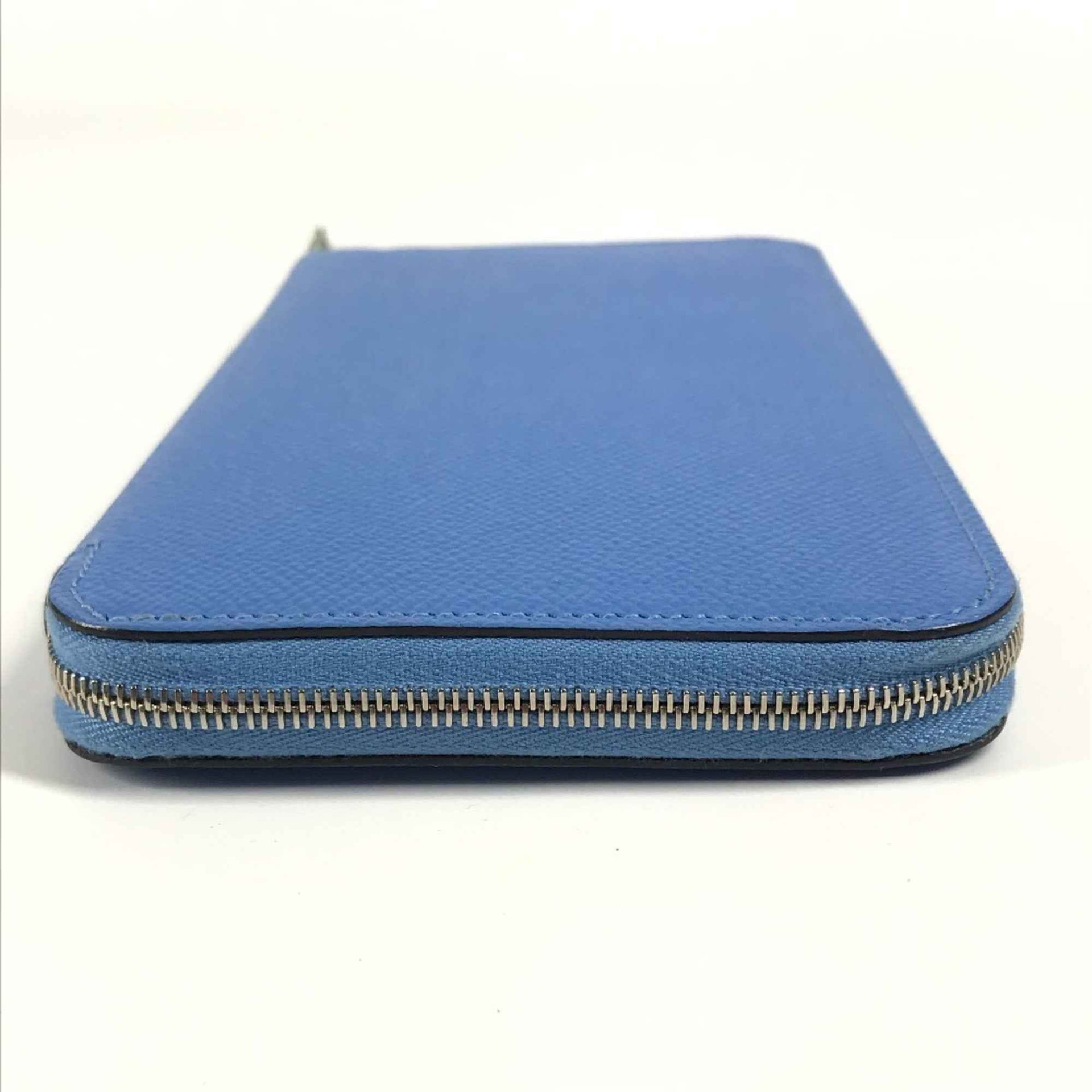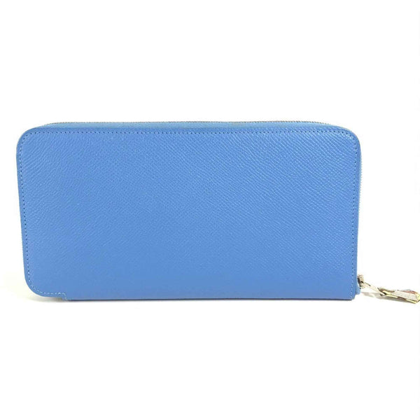HERMES Azap Long Silk-in Round Zipper Wallet, Epson, Unisex, Blue Paradise,