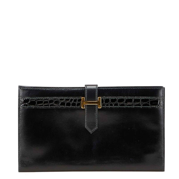 Hermes Bearn Long Wallet Black Box Calf Leather Women\'s HERMES