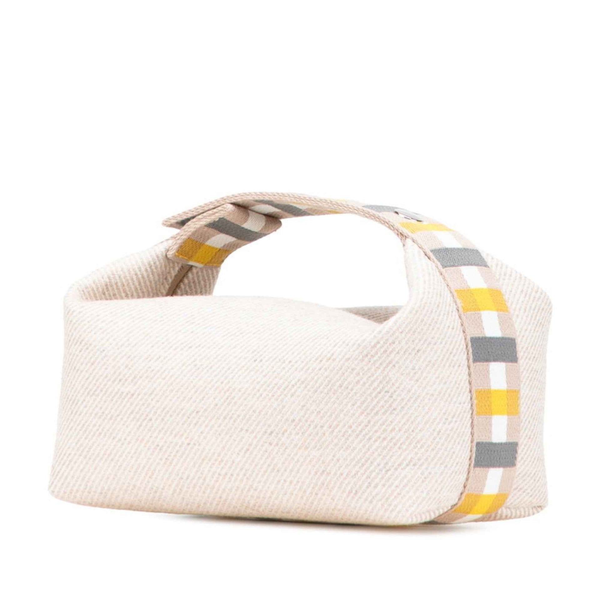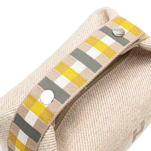 Hermès Bride A Black Au Carré Handbag Pouch Ivory Yellow Toile Chevron Women\'s HERMES