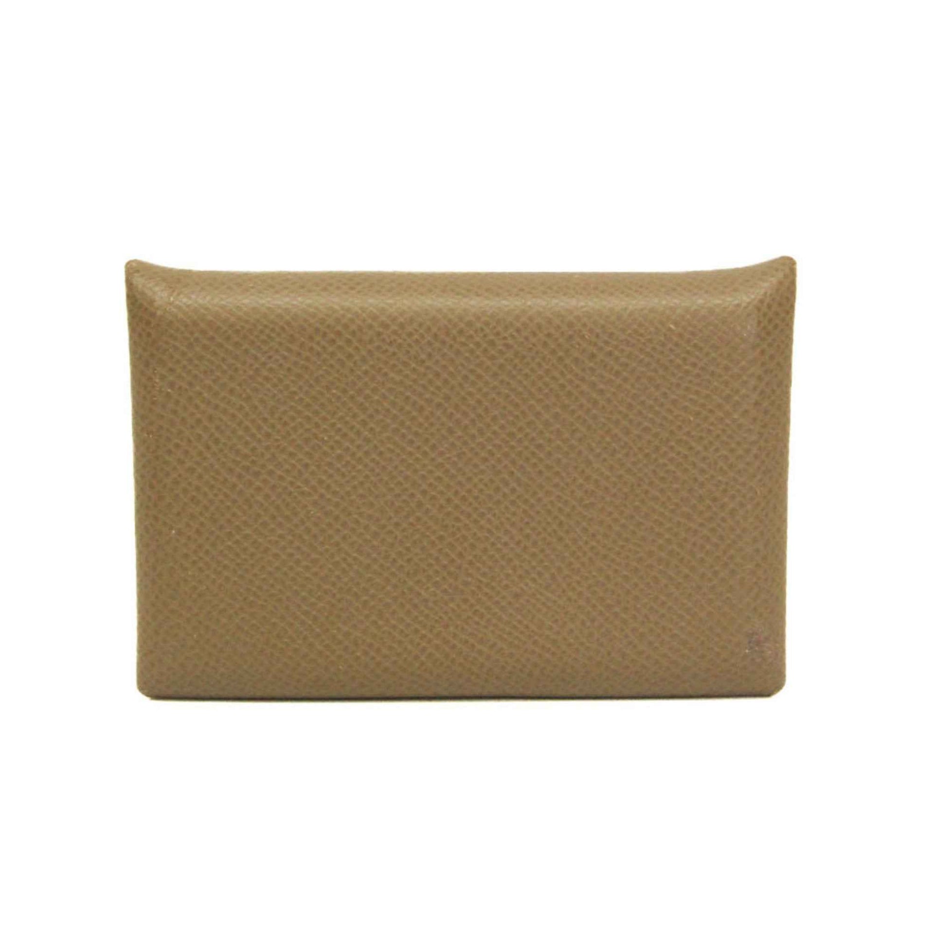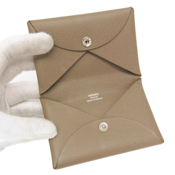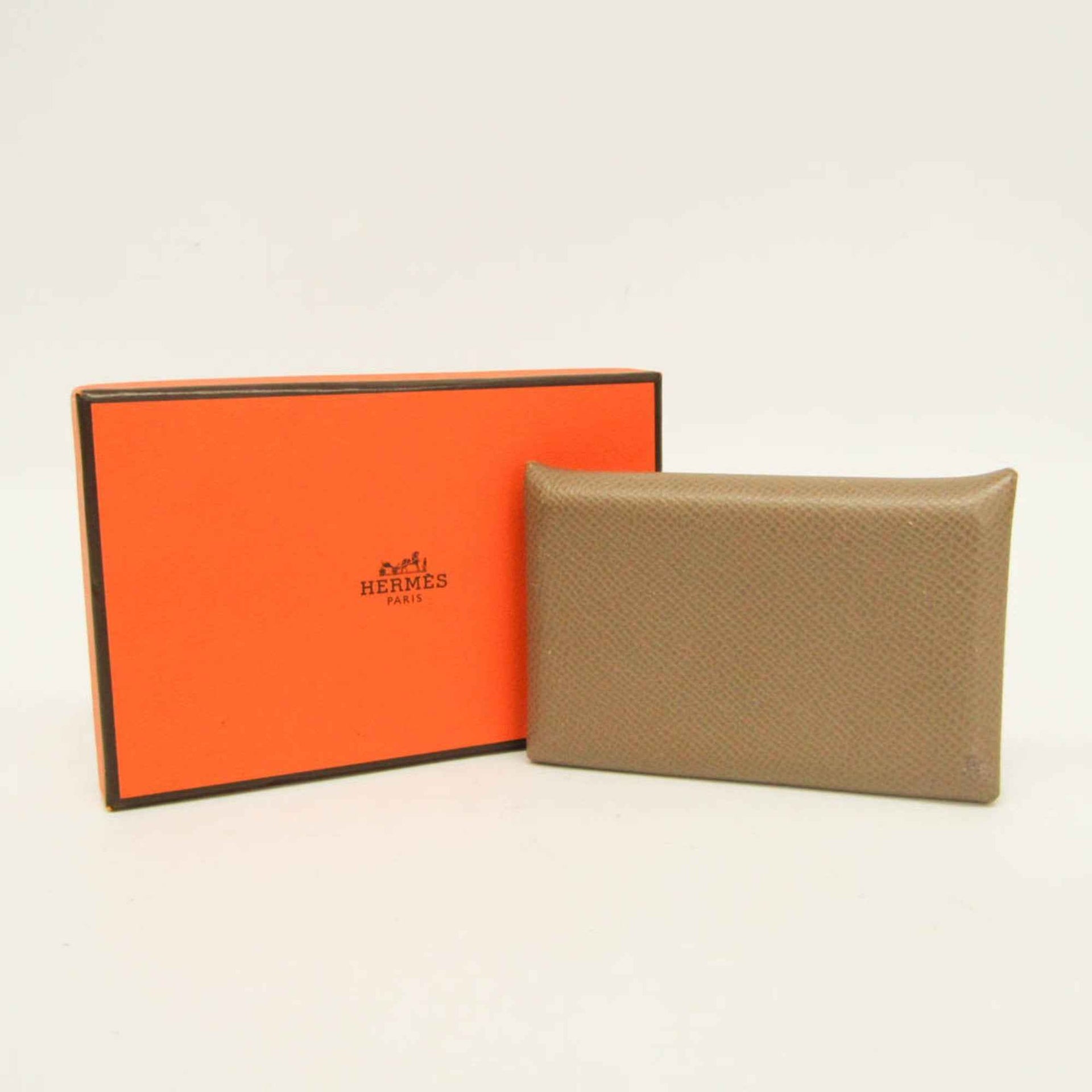 Hermes Calvi Epsom Leather Card Case Beige,Etoupe Gray