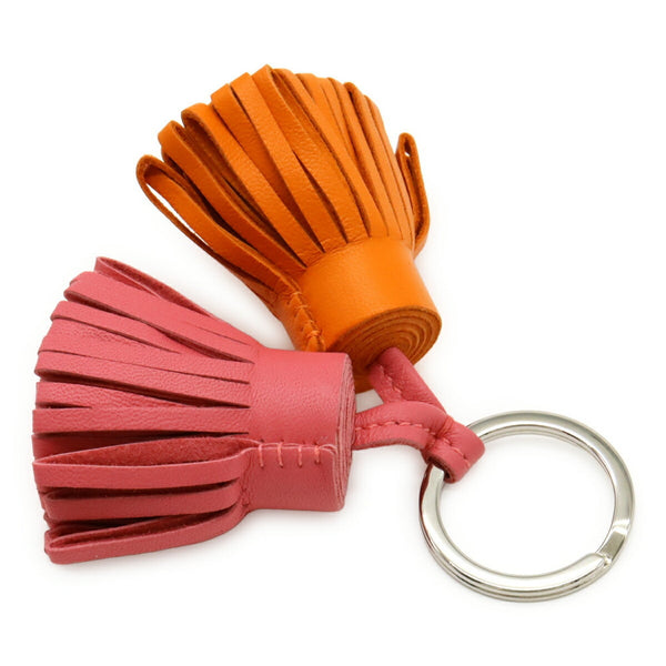 HERMES Carmen Unodos Key Ring Keychain Tassel Charm Annu Milo Leather Orange Pink