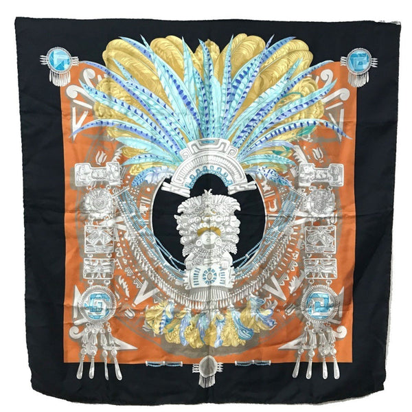 HERMES Carré 90 Buddha Carnival Scarf Silk Muffler Women\'s Black/Multicolor
