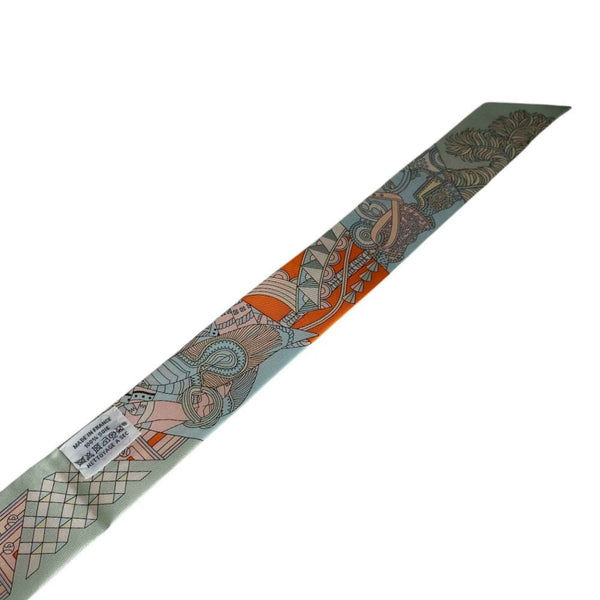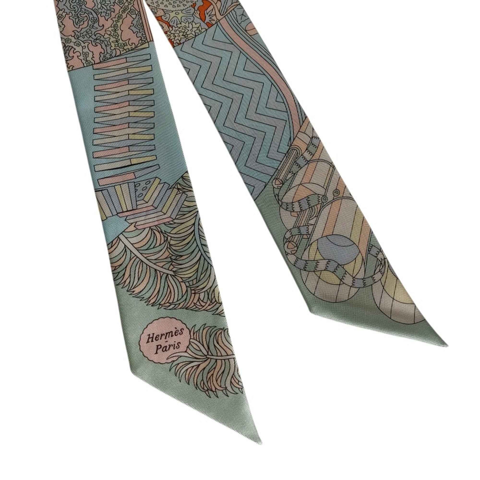 HERMES \"De l\'Ombrelle aux Duels\" Silk Twilly Scarf/Muffler, Pale Blue, Women\'s