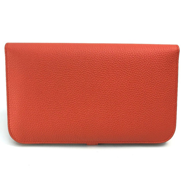 HERMES Dogon GM Duo Long Wallet with Coin Case, Togo Leather, Unisex, Rouge Tomato, Orange Red