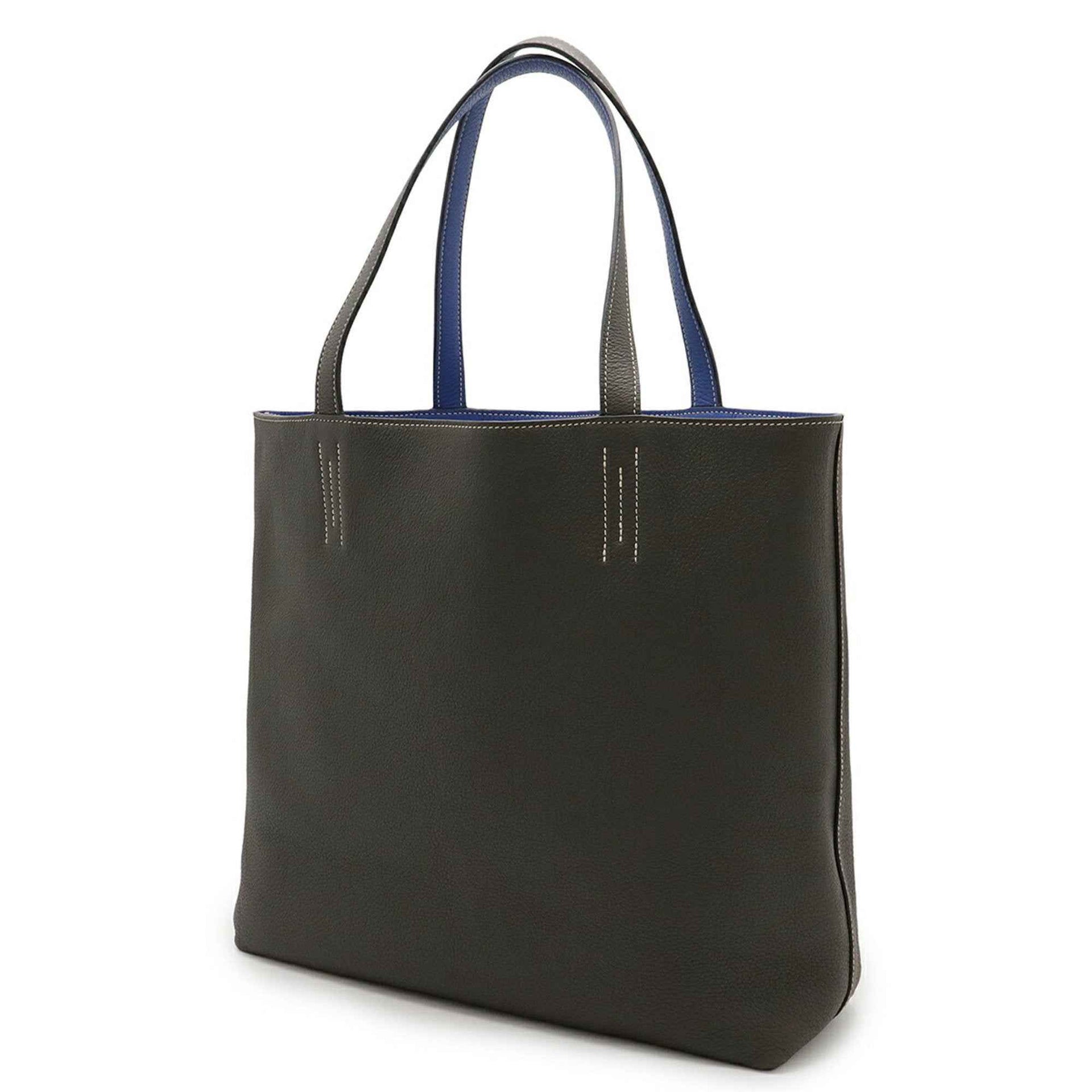 HERMES Double Sens 36 Tote Bag, Reversible, Togo, Taurillon Clemence, Etain, Bleu Electric, JO Stamp