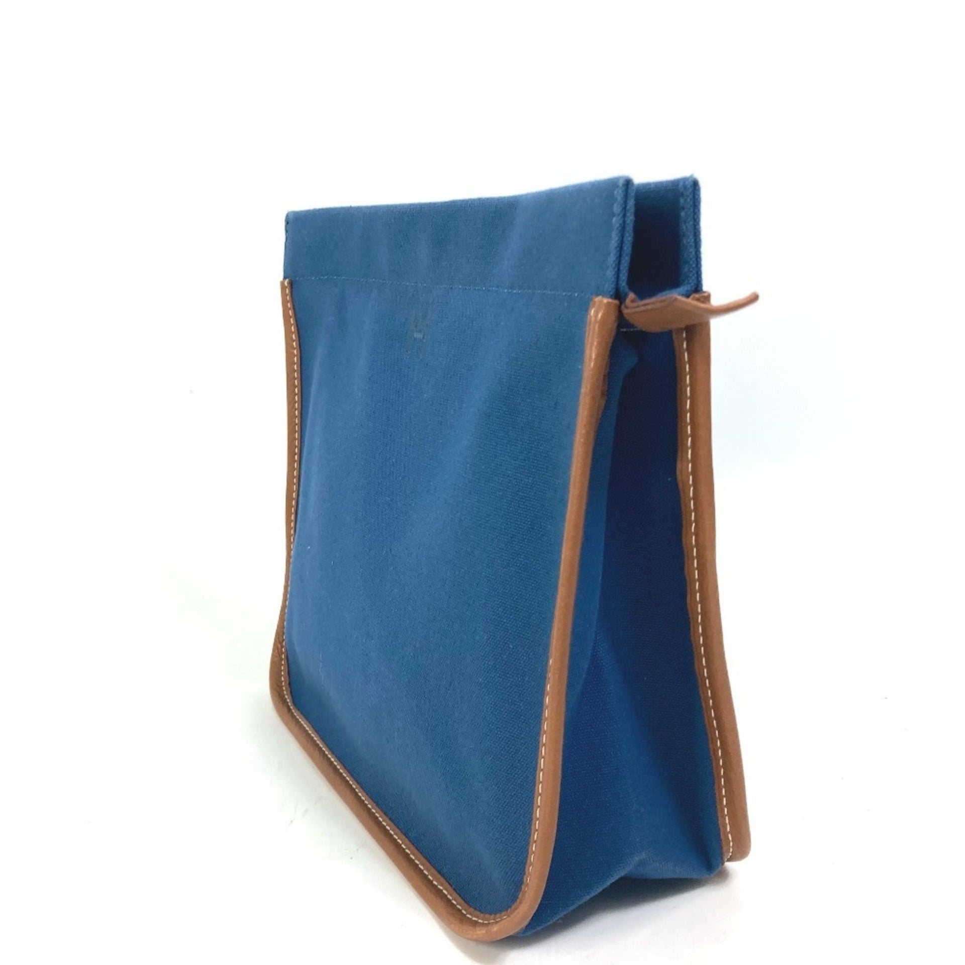 HERMES Embroidered Logo Camaieu Pouch, Makeup Bag-in-Bag Clutch Bag, Canvas/Leather, Men\'s, Navy