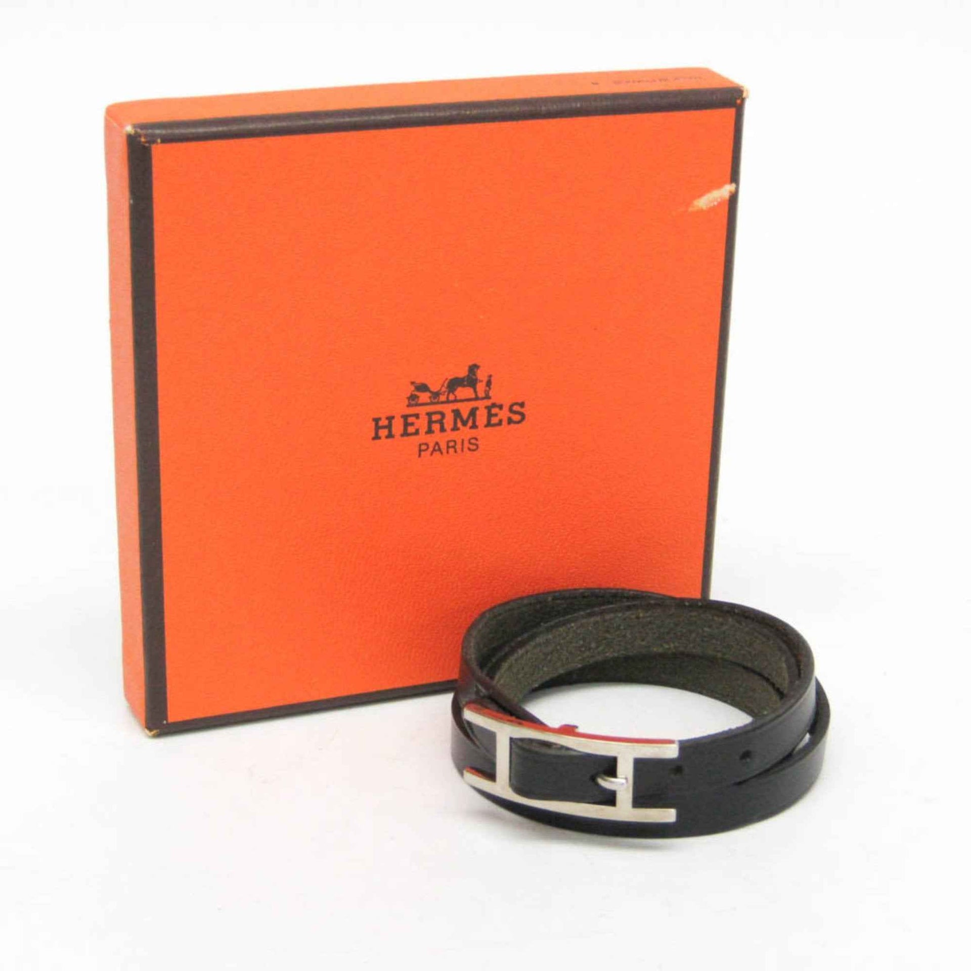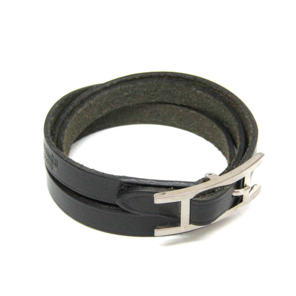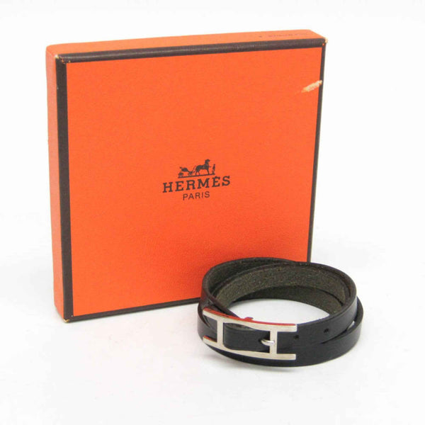 Hermes Hapi Triple Bracelet Choker Leather,Metal Bangle Black,Silver