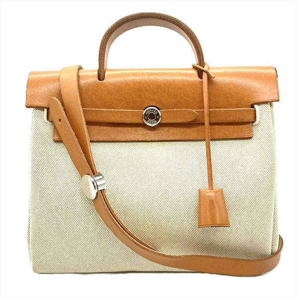 Hermes HERMES Air Bag Ad Backpack Canvas Leather □F Stamp Natural Women\'s