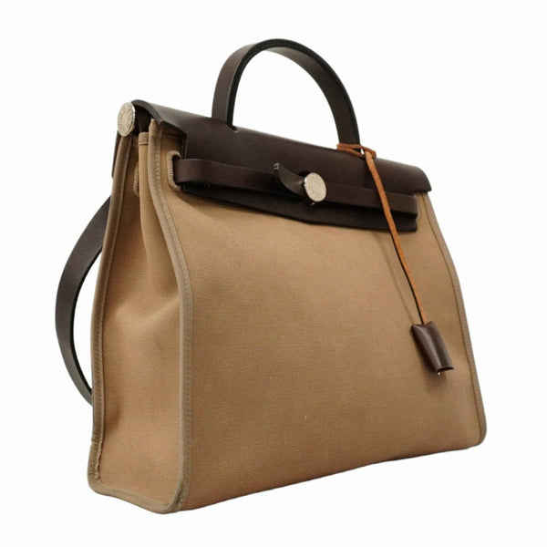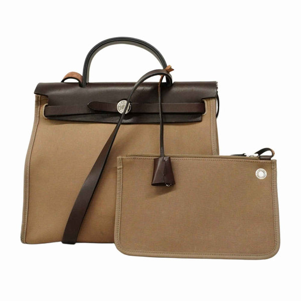 Hermes Hermès Airbag Zip PM Toile Officier Handbag, Brown, Size L Engraved, Women\'s