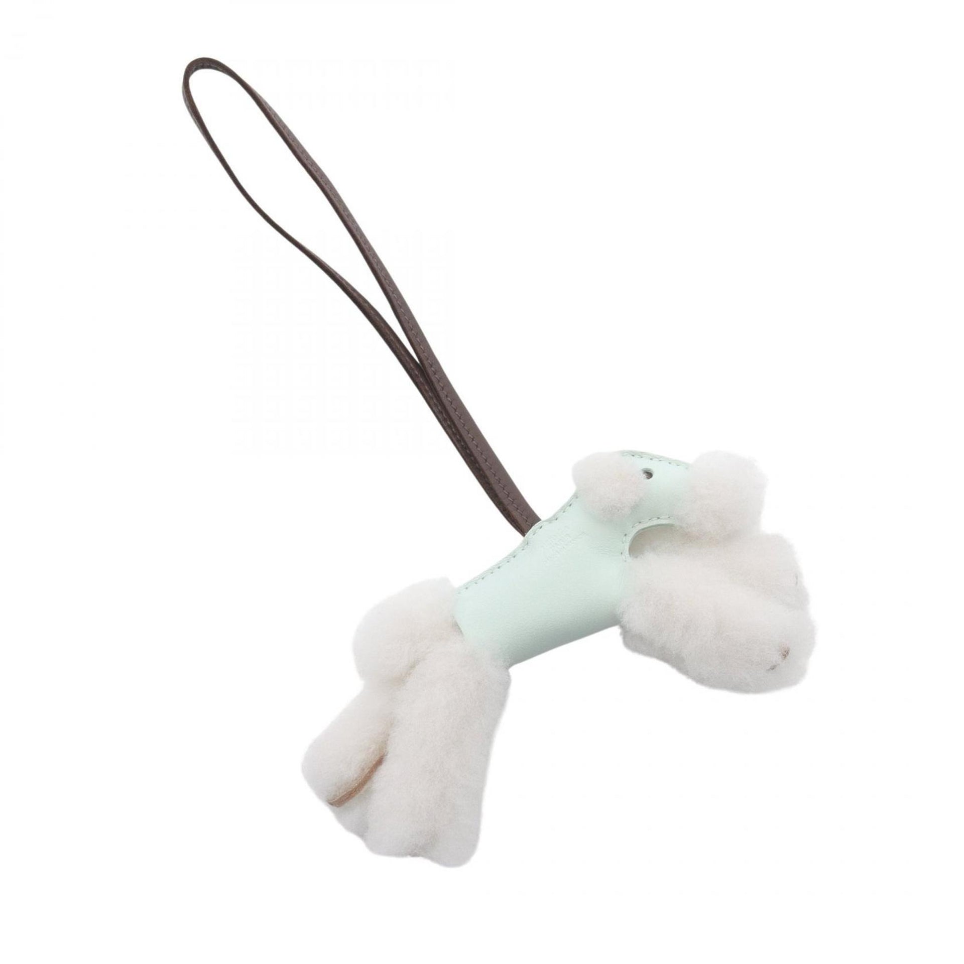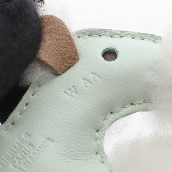 Hermes Hermès Anjo Milo Buddy Charm, Mouton Leather, Women\'s, Green/Brown/Vert Peppermint Chocolate