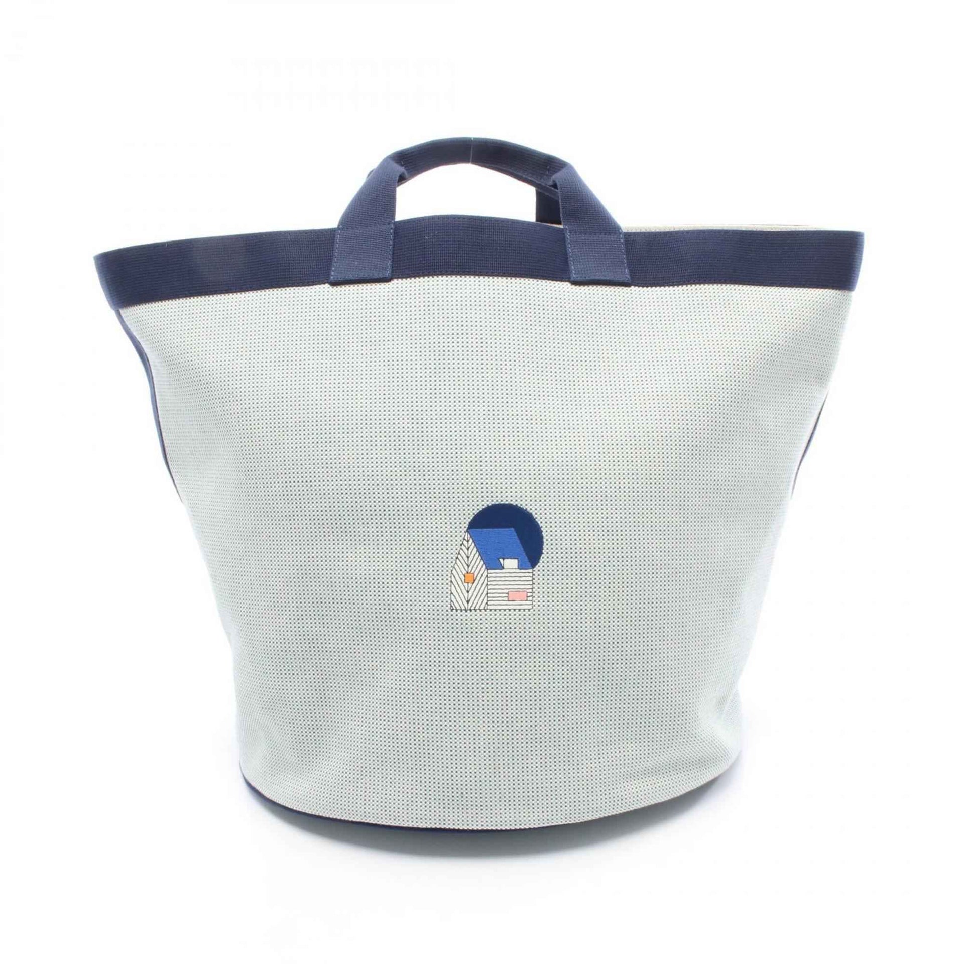 Hermes Hermès Basket Tote Bag, Canvas Toile H, Women\'s, Navy, Green, Beige