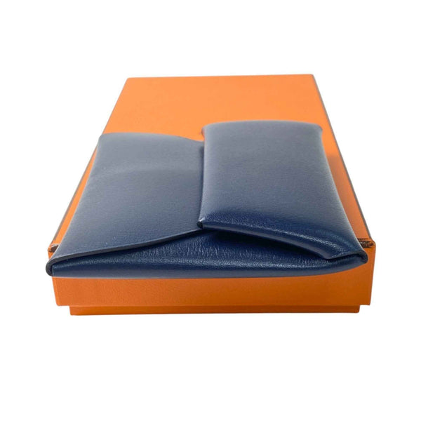Hermes Hermès Bastia Box Calf Leather Wallet/Coin Case, Navy Blue, W MZ 003 HA, with Stamp