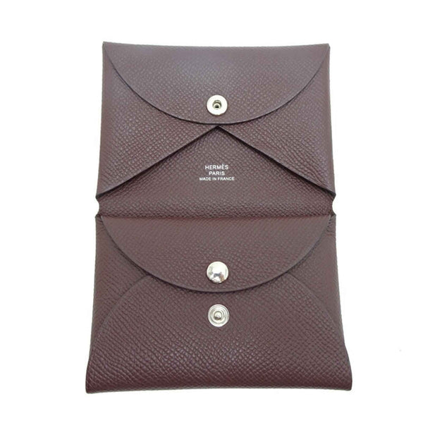 Hermes Hermès Calvi Duo W-stamped 2024 Women\'s Coin Case in Epsom Leather Rouge Cellier (Brown-Red)