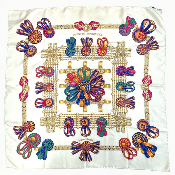 HERMES Hermes Carre 90 LES RUBANS DU CHEVAL Horse Ribbon Scarf Muffler Silk White Women\'s