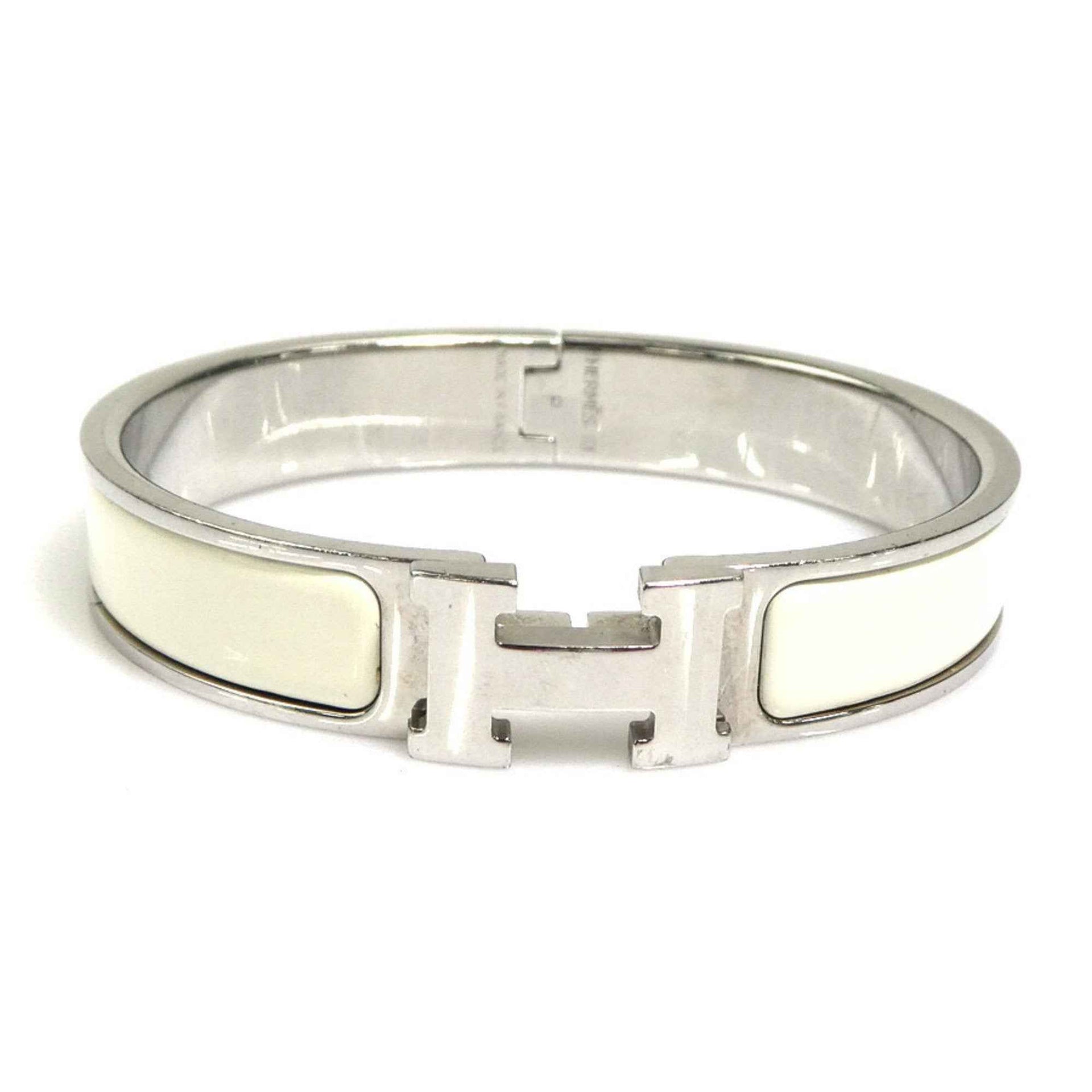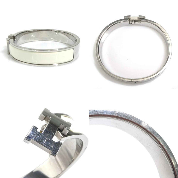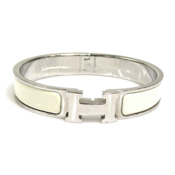 Hermes Hermès Click-Clack Metal Enamel Bangle Bracelet in Silver and Off-White for Women (e60887i)