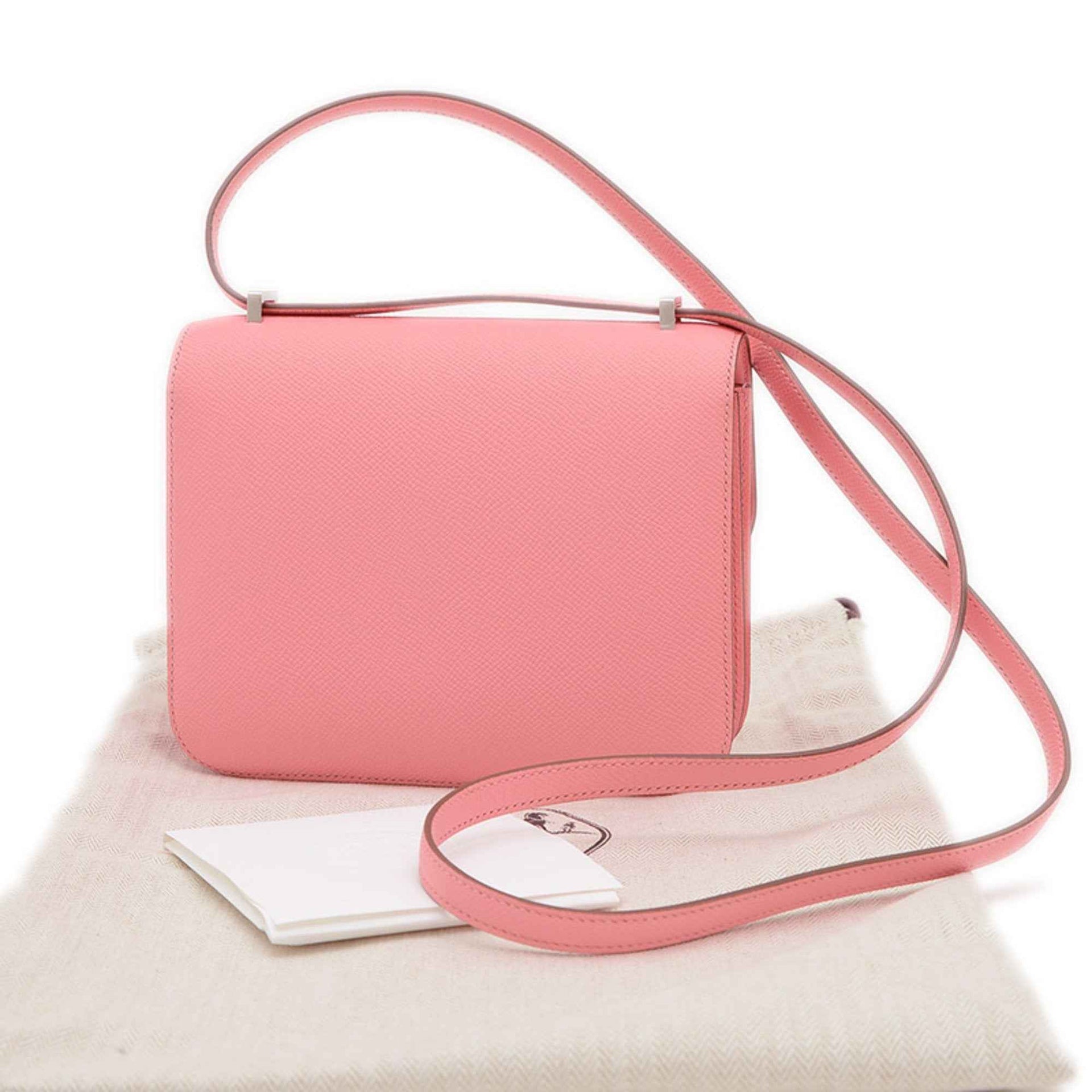 Hermes Hermès Constance Mini 18 Shoulder Bag, Miroir Epsom Rose Confetti, Silver Hardware, K Stamp