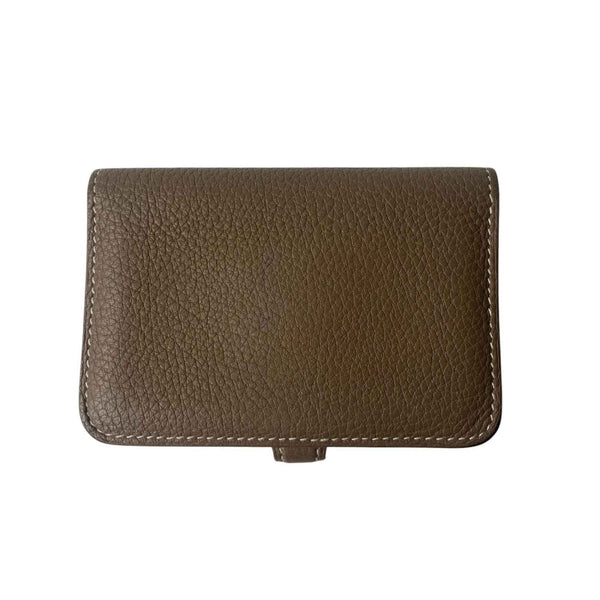 Hermes Hermès Dogon Women\'s Card Case, Etoupe Leather, Taurillon Z Stamp