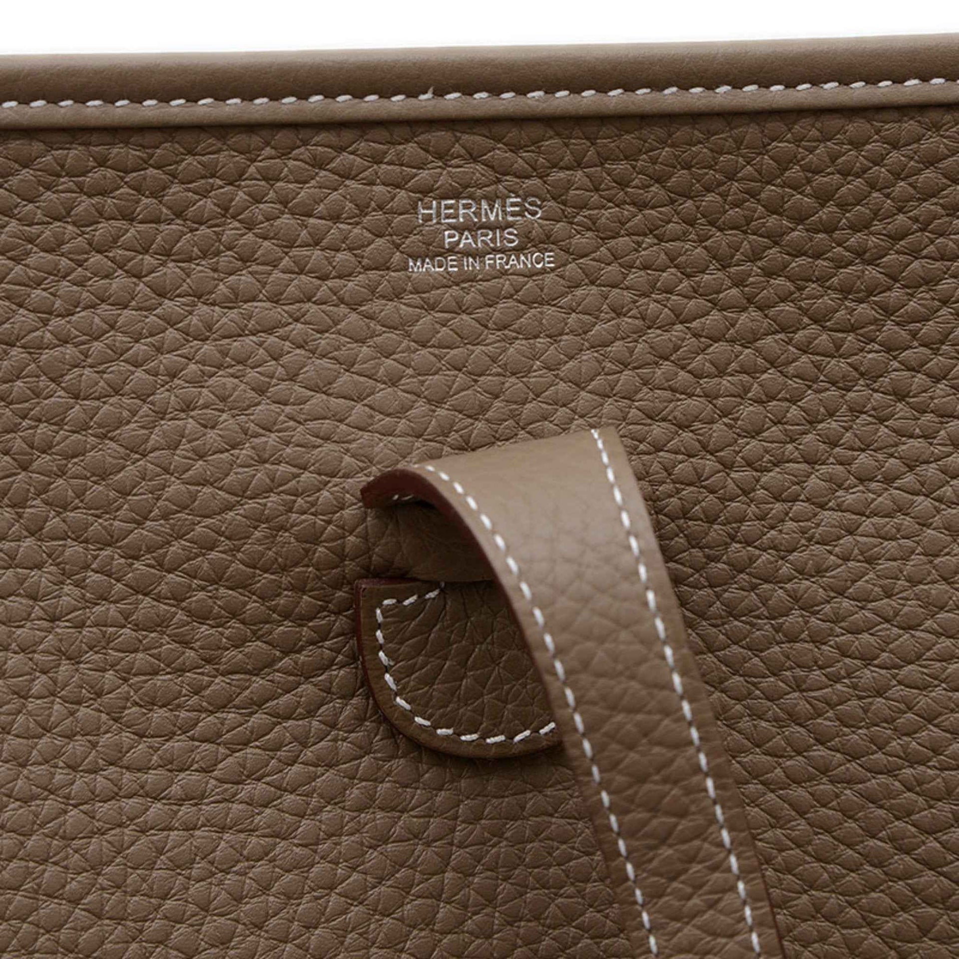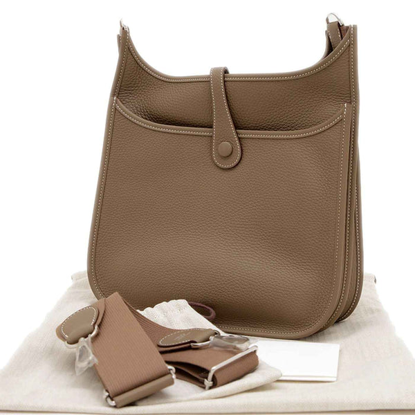 Hermes Hermès Evelyne 3 PM Shoulder Bag in Taurillon Etoupe with Silver Hardware, K Stamp