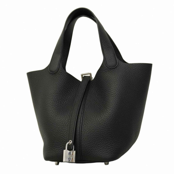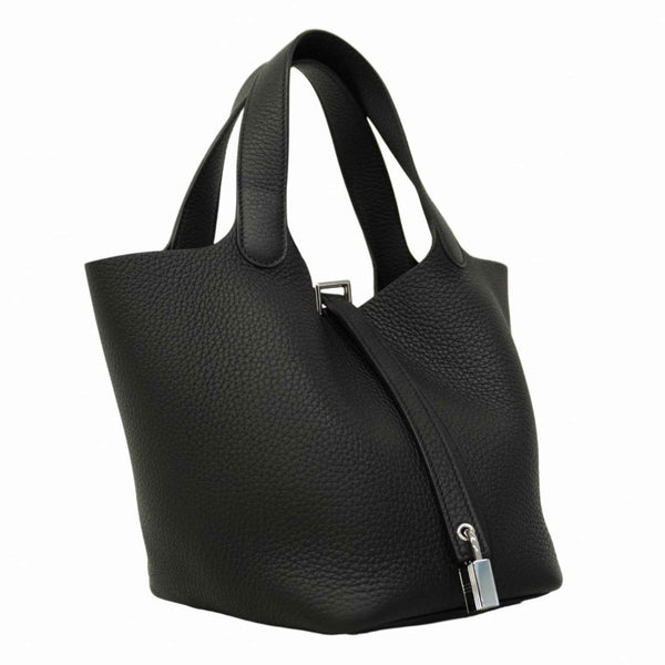 Hermes Hermès Picotin Lock PM Handbag in Taurillon Clemence Leather, Black, Double Stamped, Women\'s
