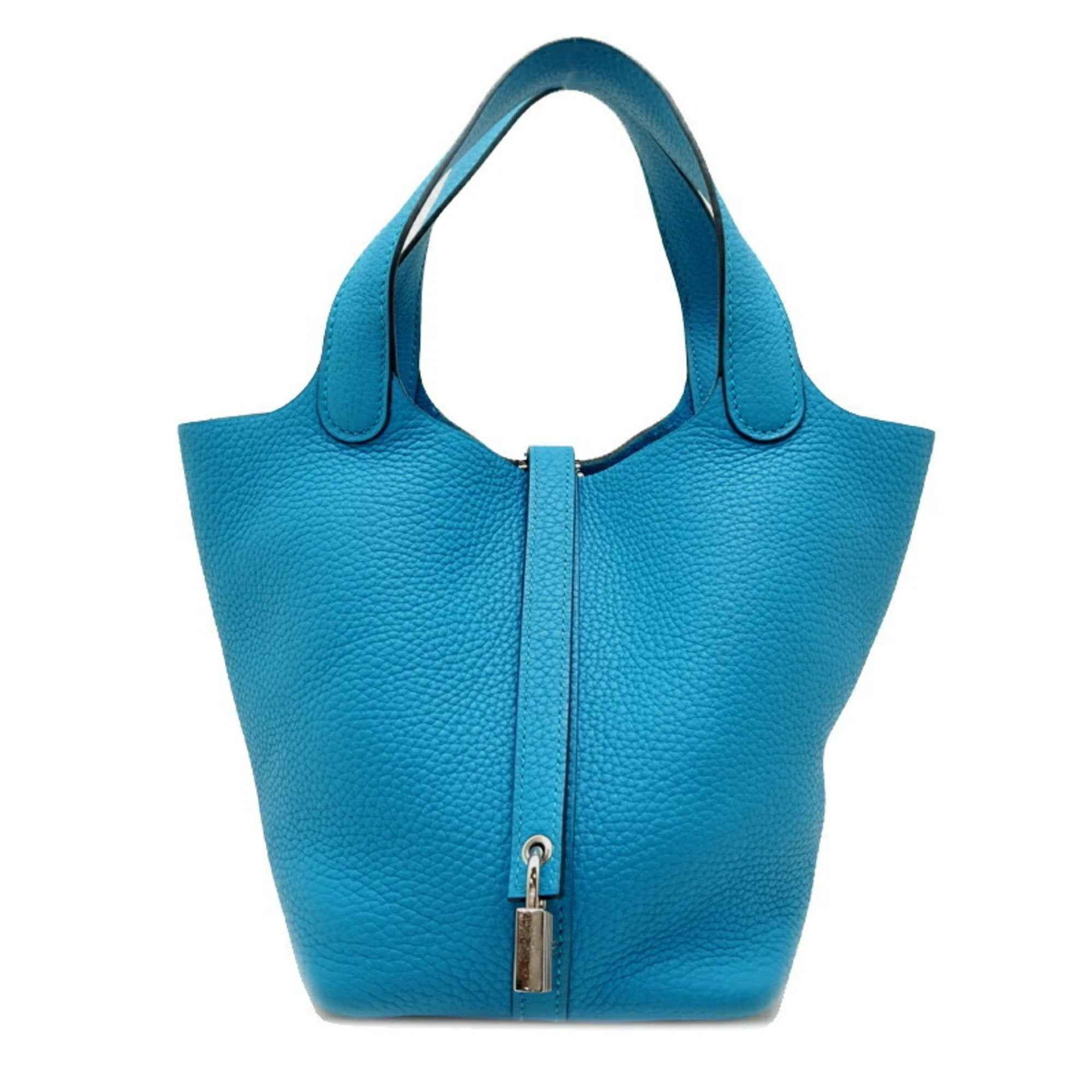 Hermes Hermès Picotin Lock PM Handbag in Taurillon Clemence Leather with Y Stamp, Silver (Palladium) Hardware, Blue Frieder