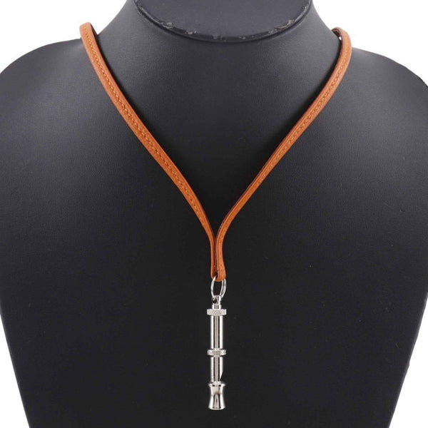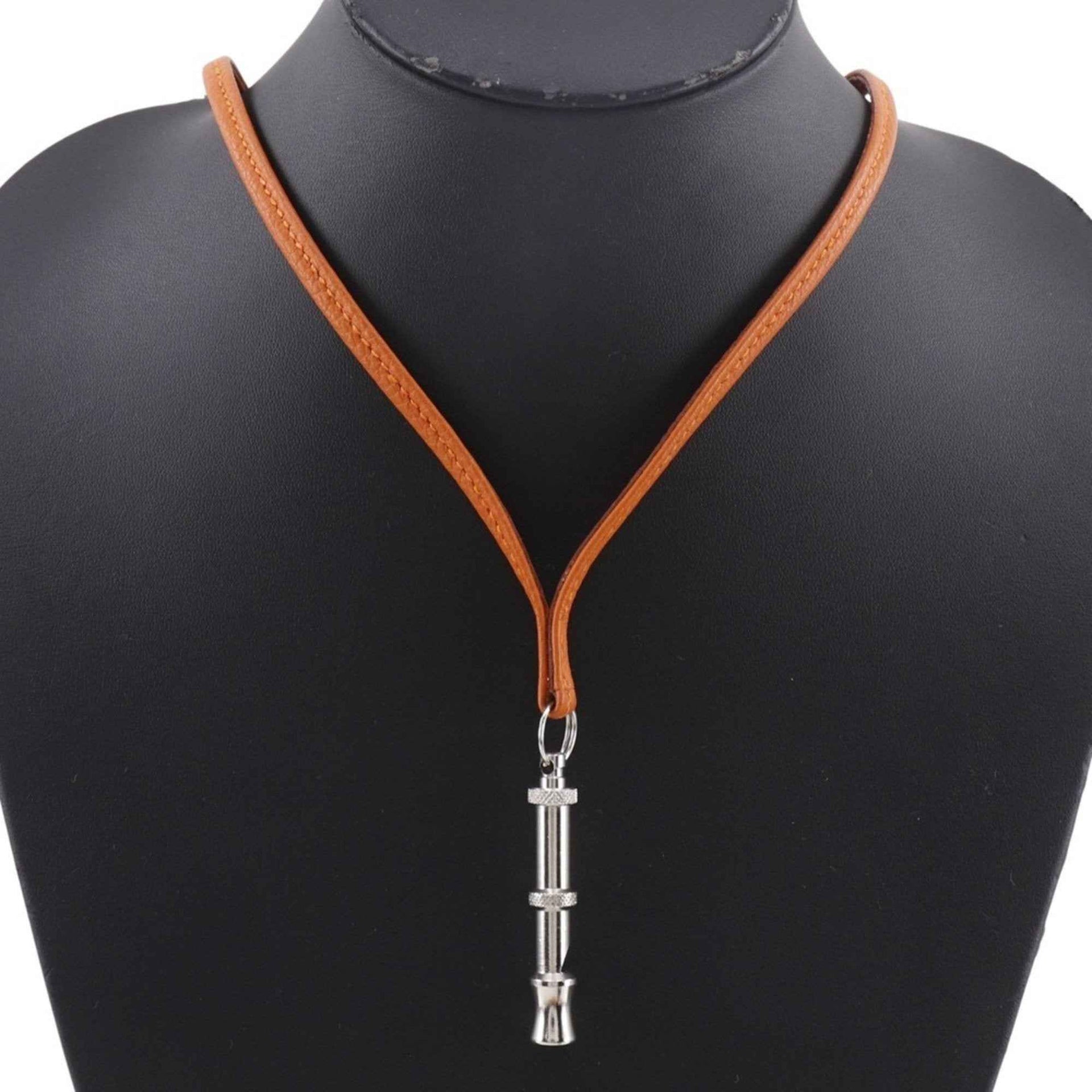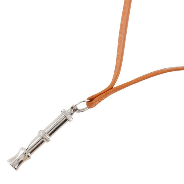 Hermes Hermès Shifre Necklace with Ultrasonic Whistle, Orange/Silver, Approx. 20g, Women\'s