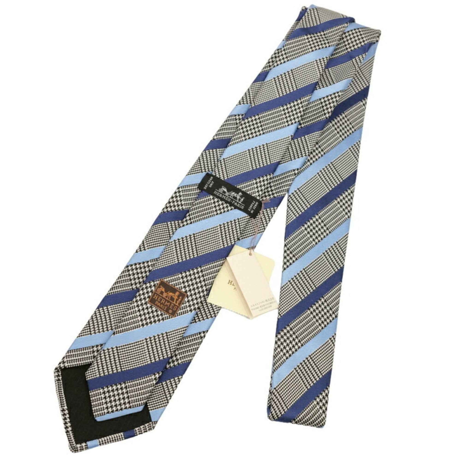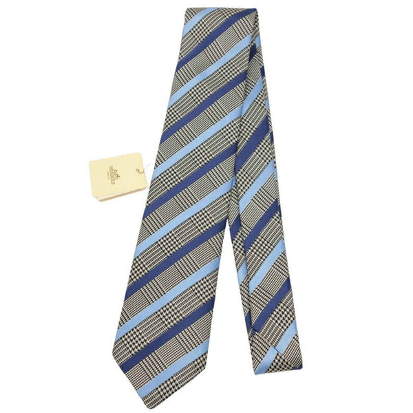 HERMES Hermes tie, 100% silk tweed stripes, blue and gray