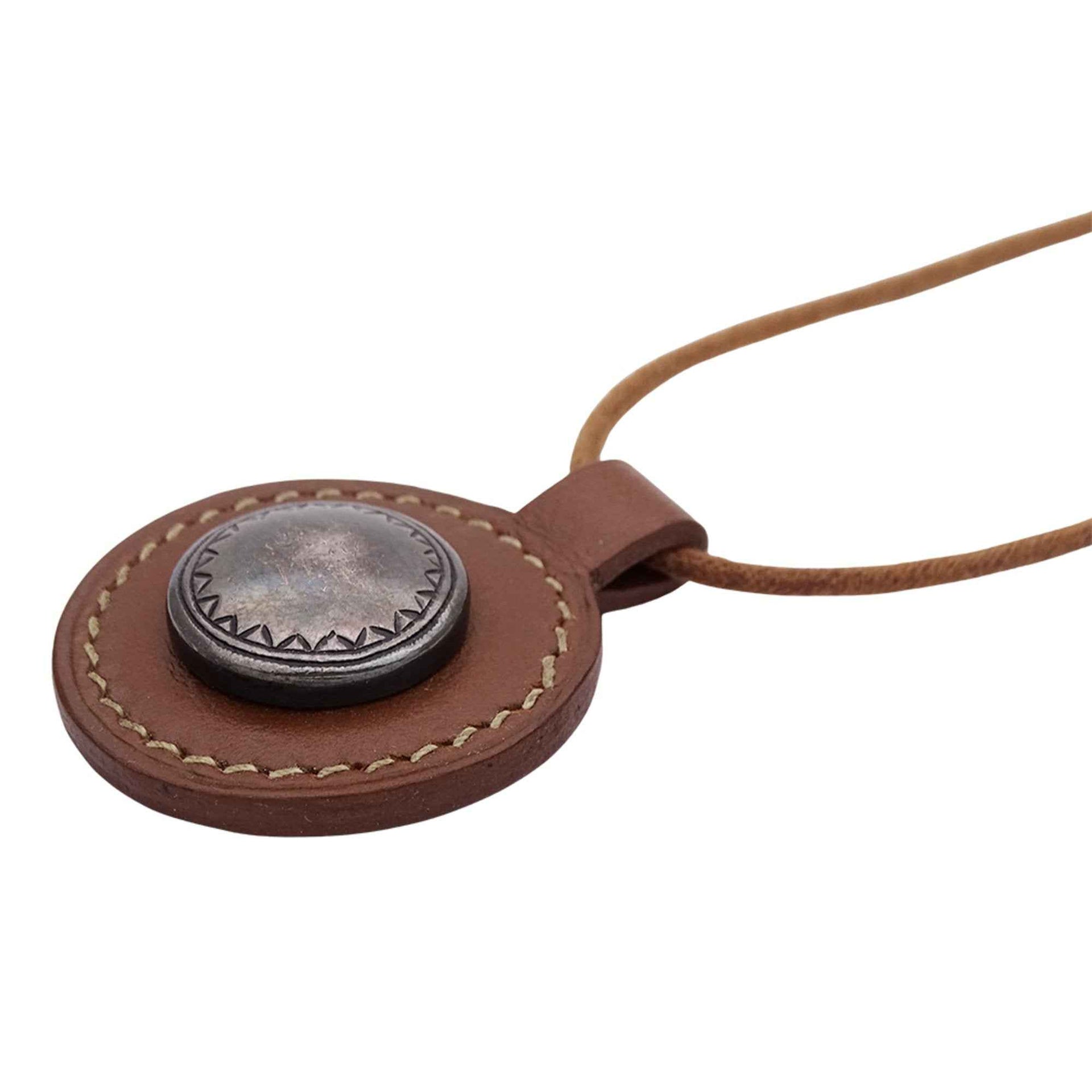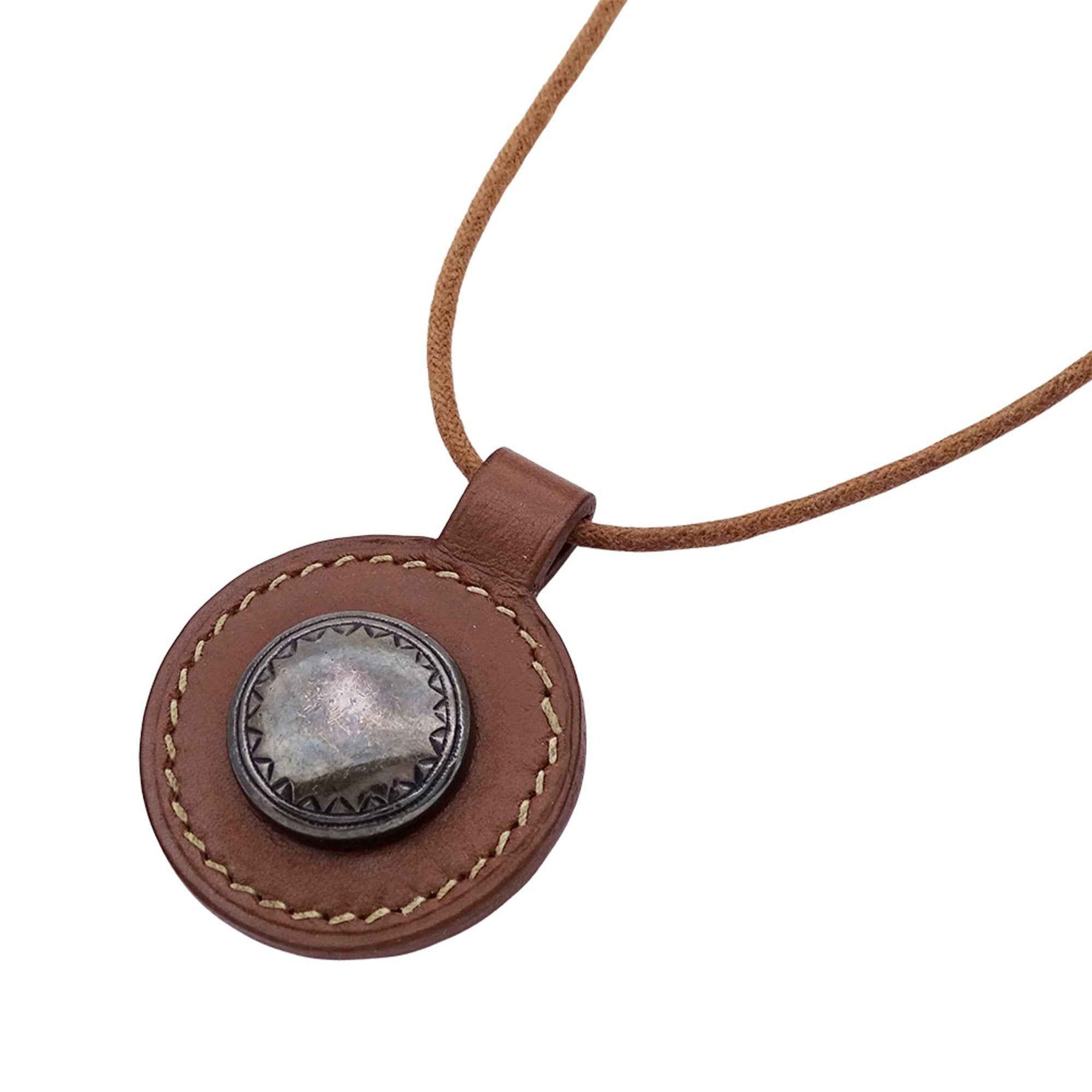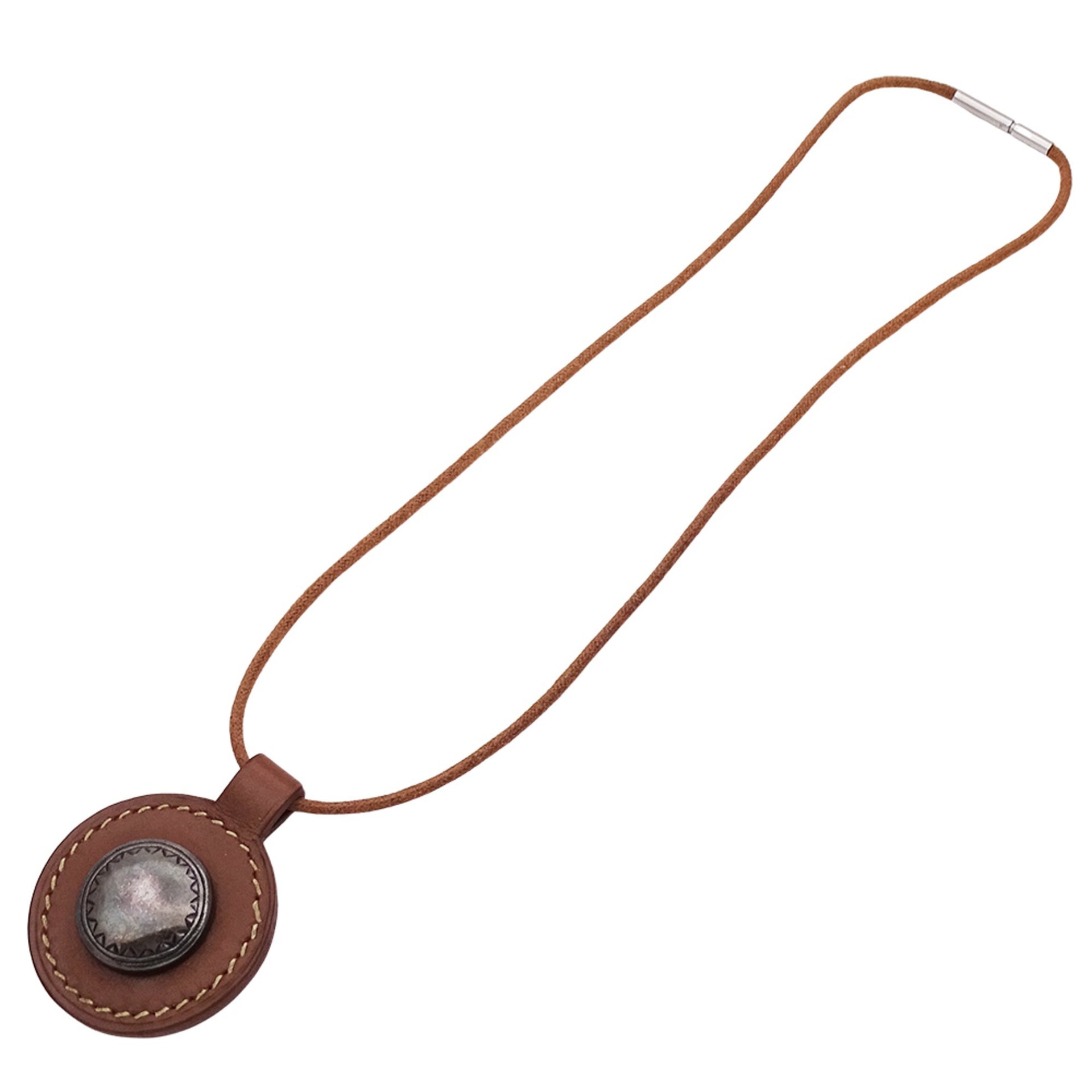 Hermes Hermès Touareg Leather Pendant Necklace for Men and Women, Brown, Large, F Stamped