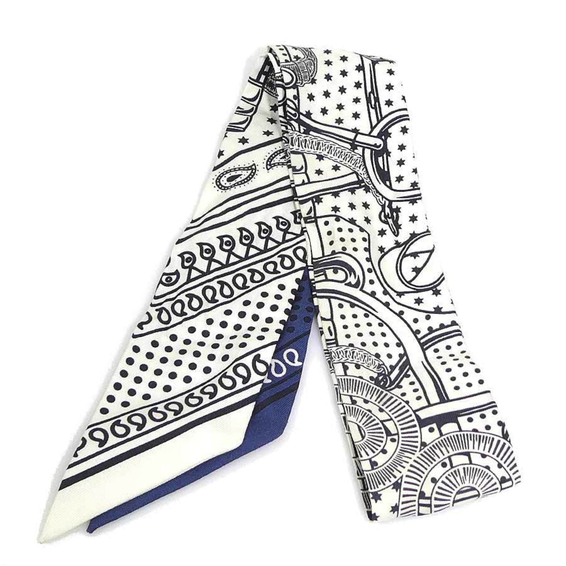 Hermes Hermès Twilly Silk Scarf/Muffler in White, Navy, and Black, Women\'s, h31511a