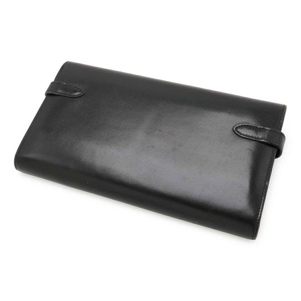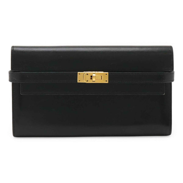 HERMES Kelly Wallet, Long, Bi-fold Box Calf Leather, Black, □L Stamped